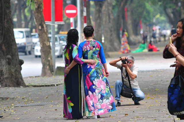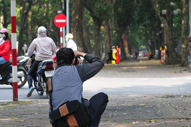 Khoảng thời gian tháng tư, khi những hàng sấu cổ thụ rụng lá, phố Phan Đình Phùng lại khoác lên mình tấm áo vàng với vẻ đẹp cổ xưa, trầm lắng và cực kỳ hấp dẫn đối với dân mê chụp ảnh.
