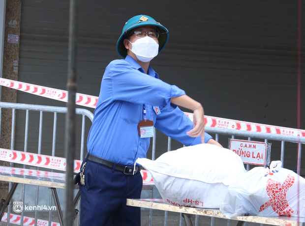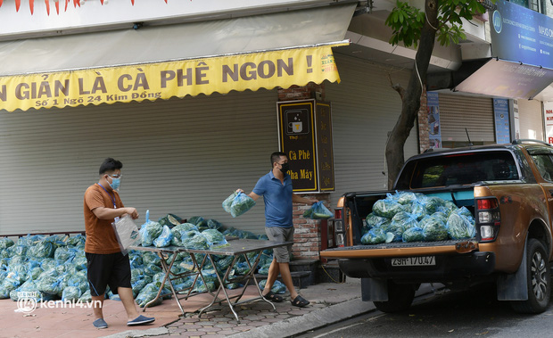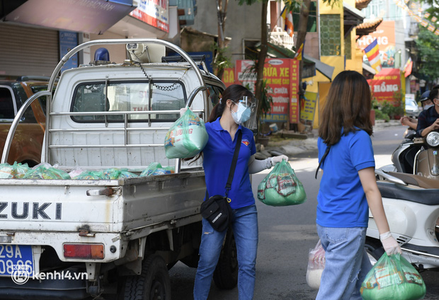 "Phường đã bố trí xe ô tô với lực lượng chức năng phường, dân quân, thanh niên tình nguyện được mặc đầy đủ áo bảo hộ để phát thực phẩm đến từng nhà người dân. Khu vực từ ngõ 24 Kim Đồng thông đến một số ngõ, ngách khác trong diện tạm phong toả với khoảng 200 hộ dân", một cán bộ trực chốt cho hay.