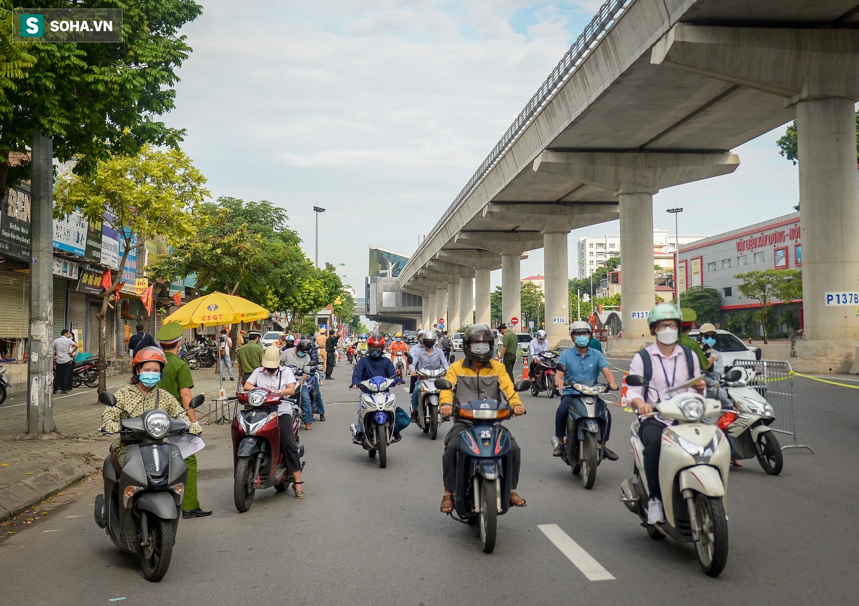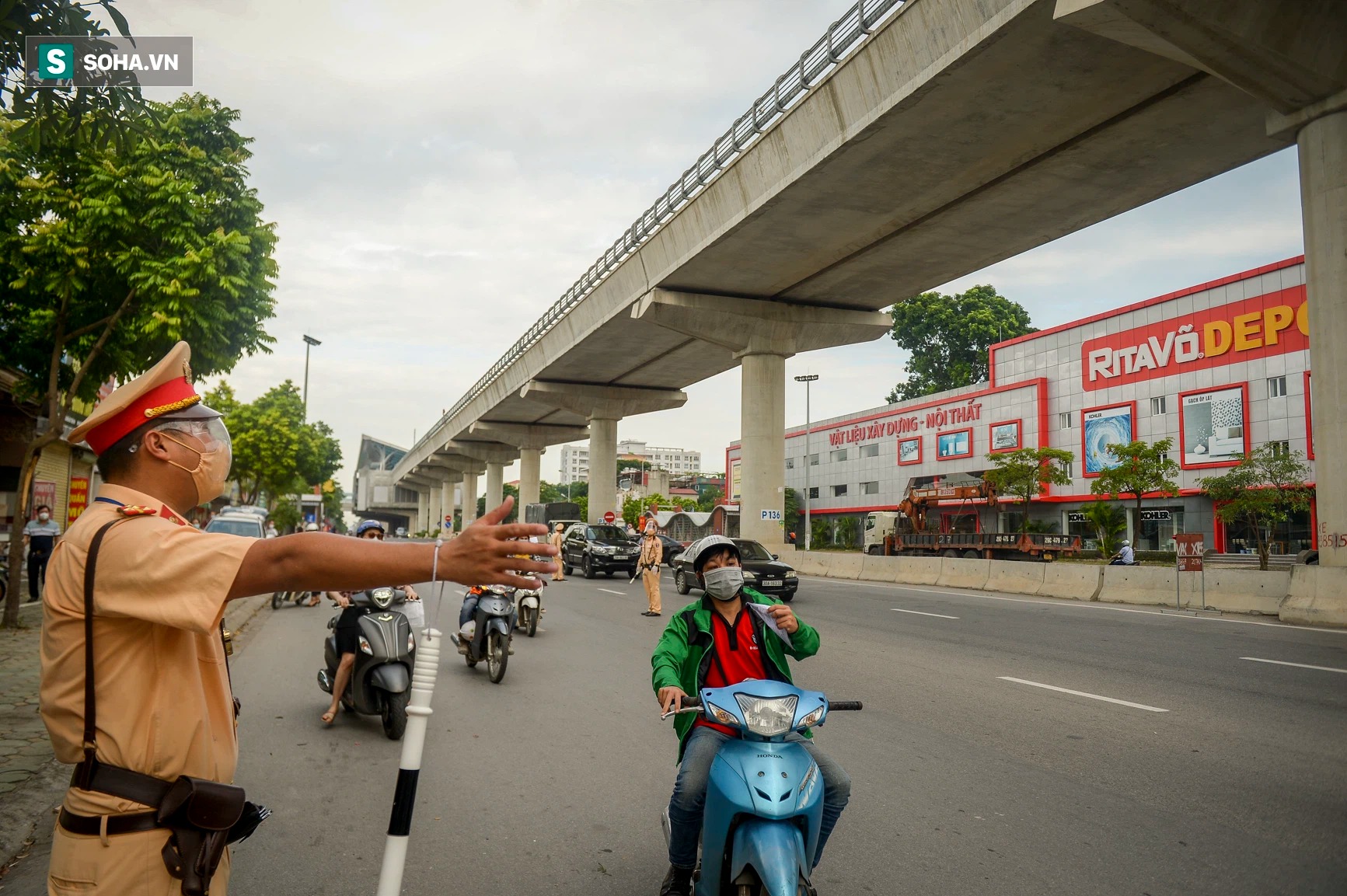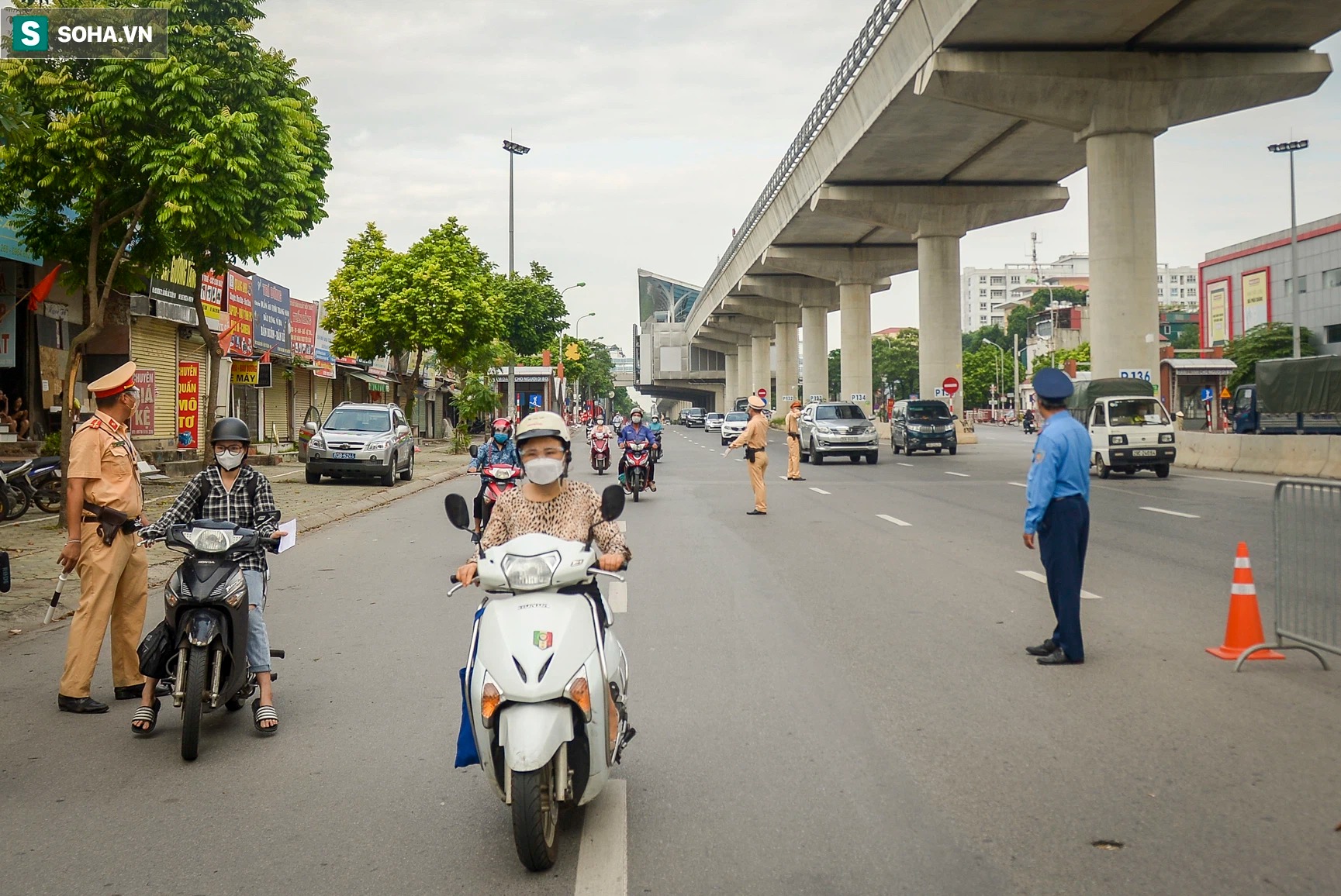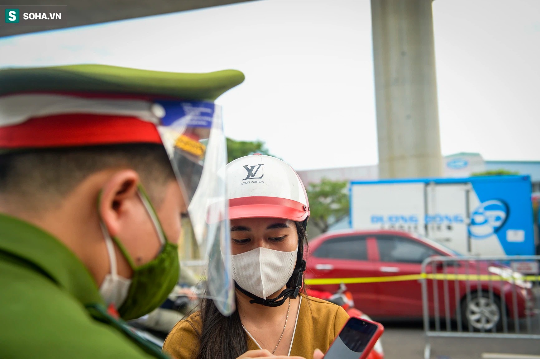 Sáng 8/9, tại chốt kiểm soát Covid-19 Cầu Diễn, lực lượng chức năng tiến hành kiểm tra giấy đi đường mới có mã QR, việc này diễn ra trong khoảng 20 giây.
