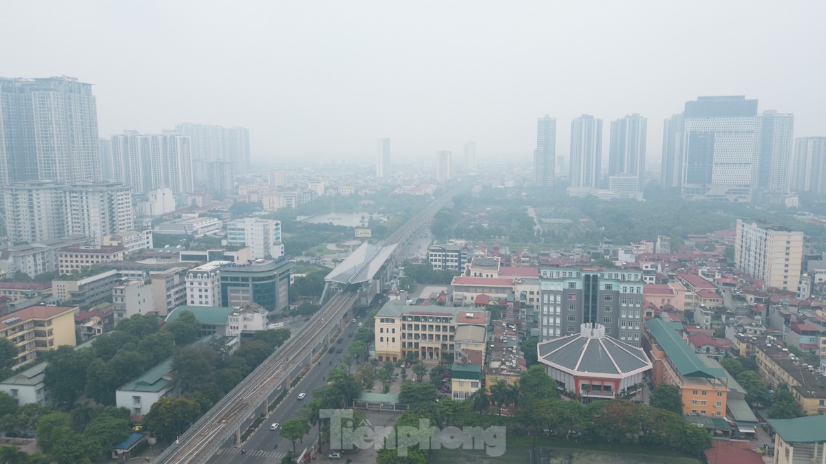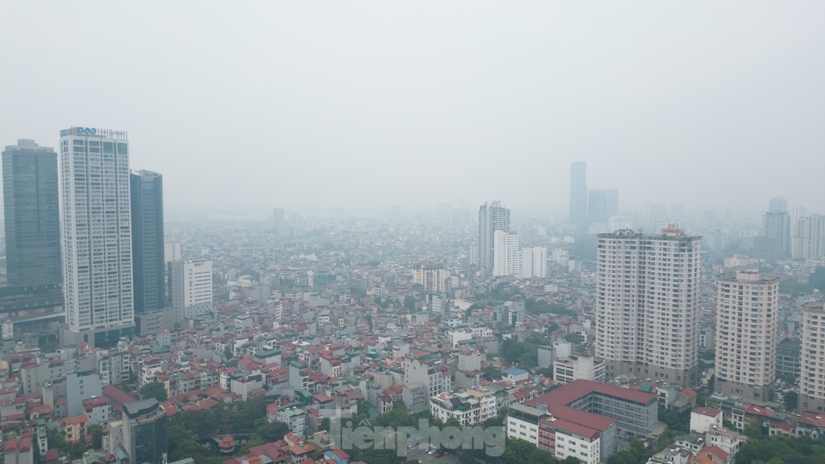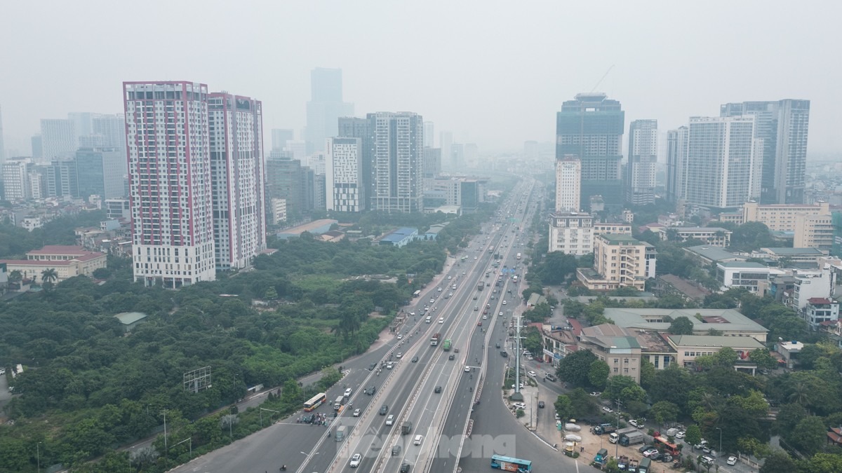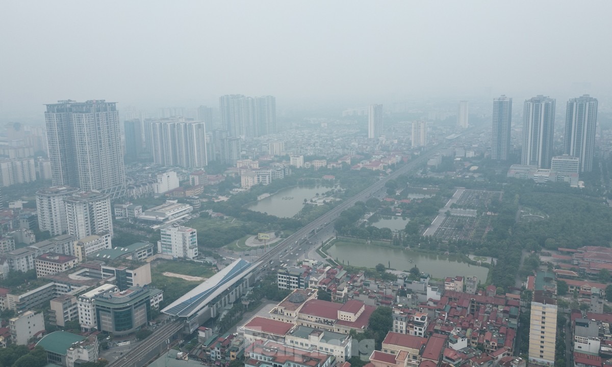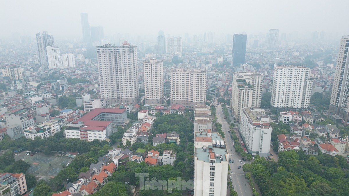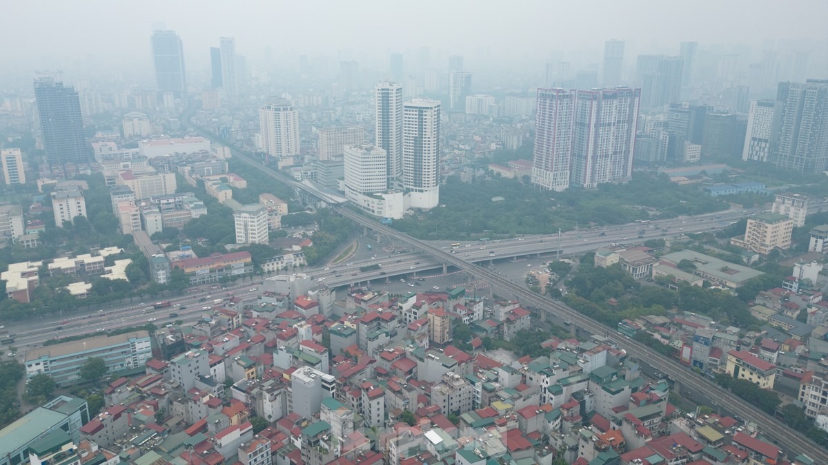 Nhìn từ trên cao cảnh sương mù "bủa vây" Thủ đô trưa 15/6.