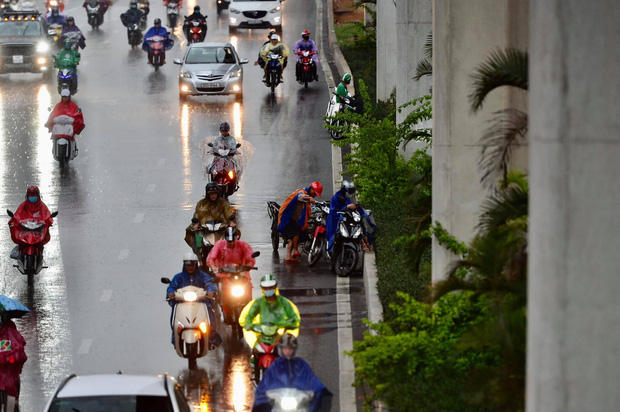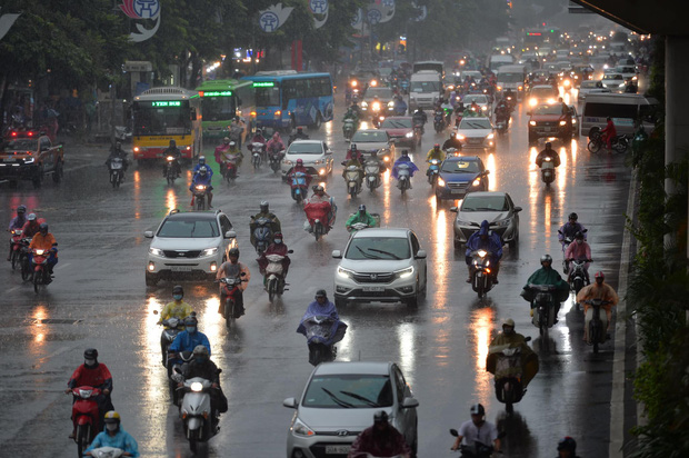 Chiều 22/9, do ảnh hưởng của khối không khí lạnh tại khu vực Hà Nội đã có mưa lớn. Tuy không khiến các tuyến phố bị ngập nhưng lúc hơn 16h chiều mây đen kéo về bao trùm khiến bầu trời tối sầm kèm theo trận mưa trắng trời khiến các phương tiện phải bật đèn xe di chuyển.