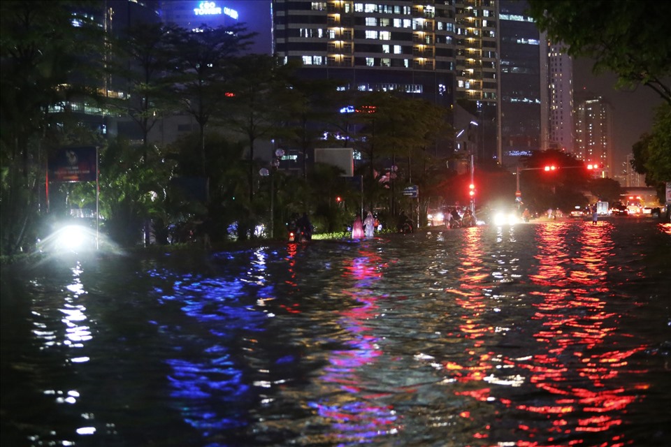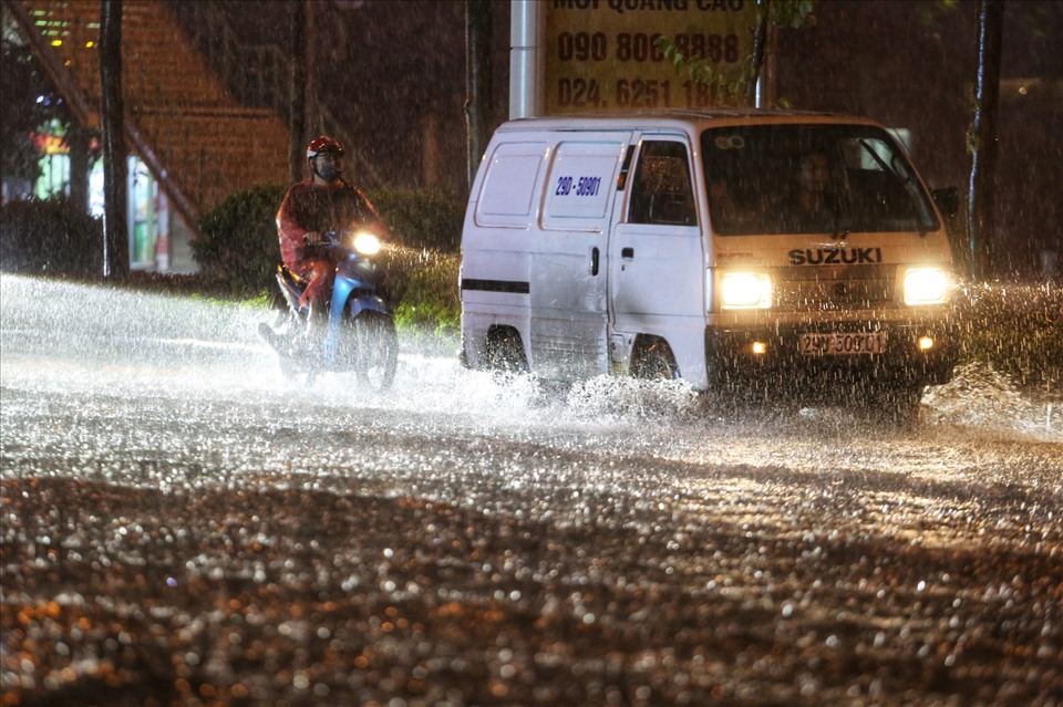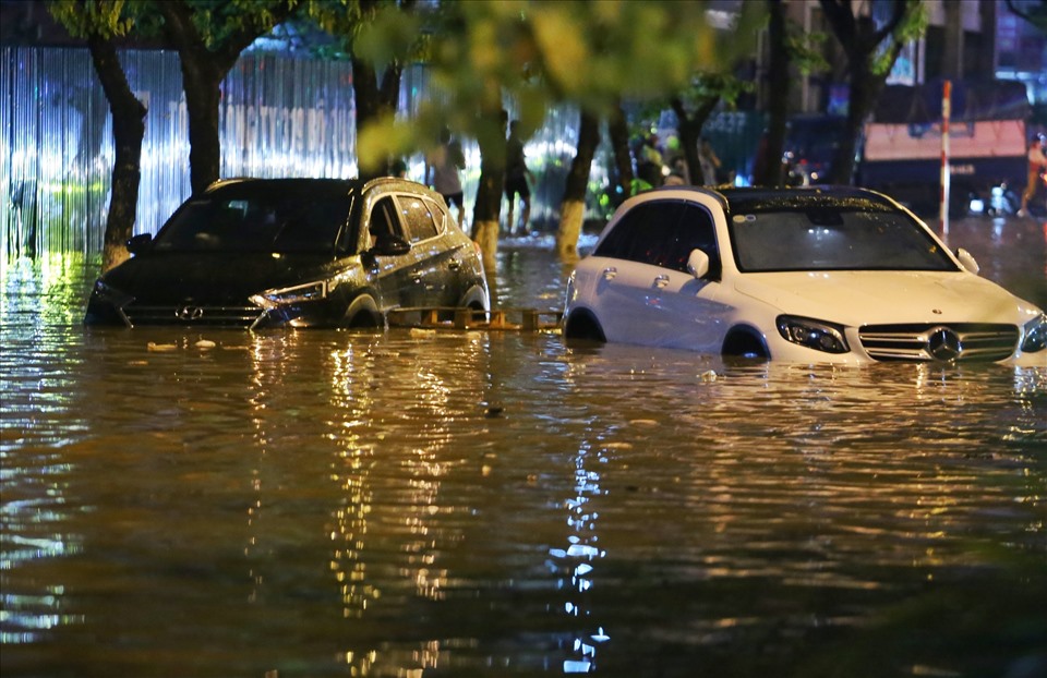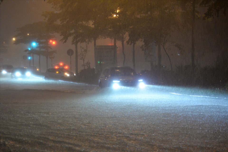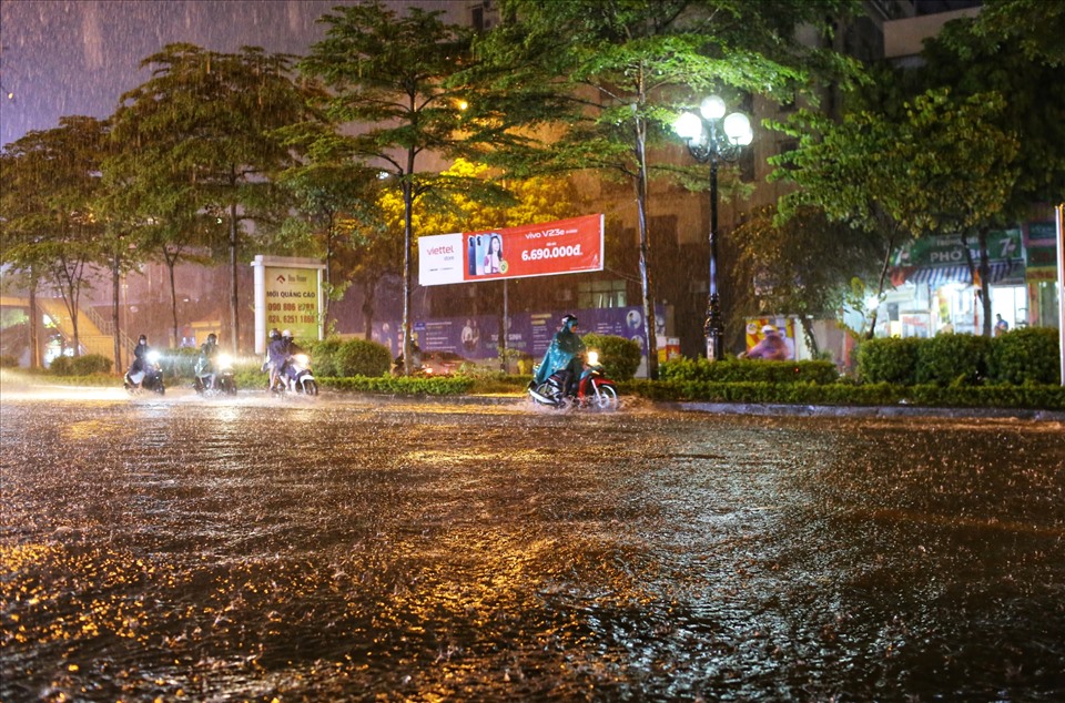 Khoảng 20h15 ngày 13.6, cơn mưa lớn khiến nhiều tuyến đường ở Hà Nội ngập úng.