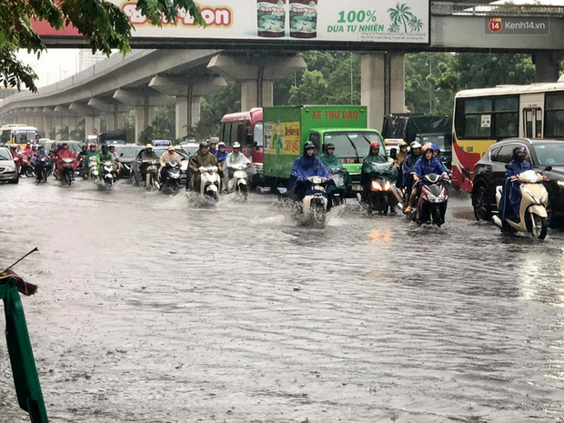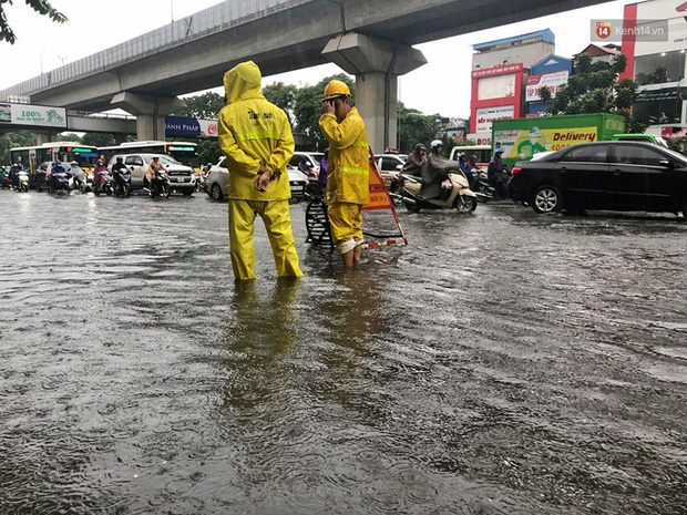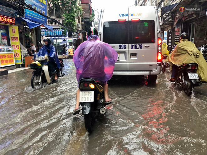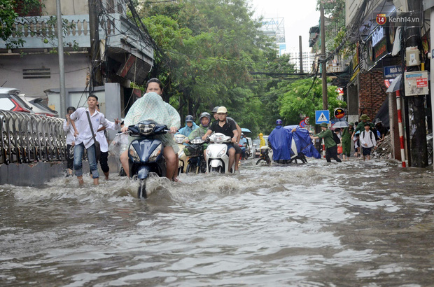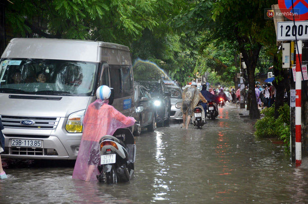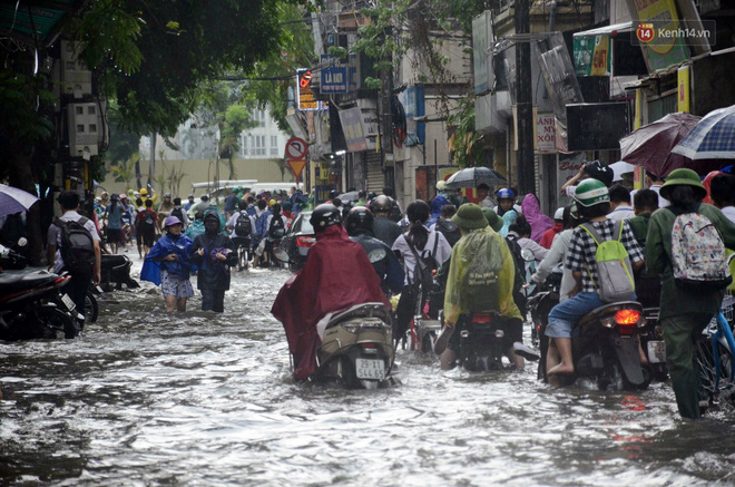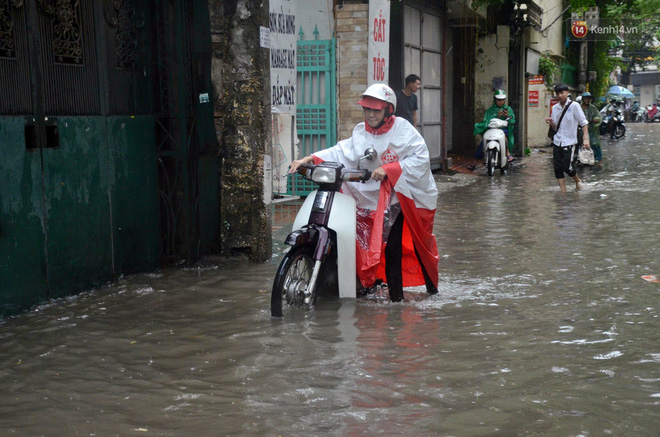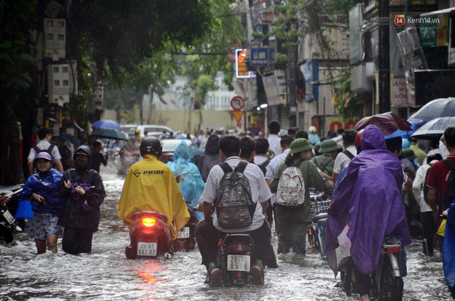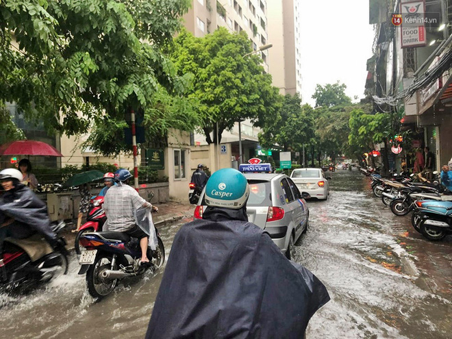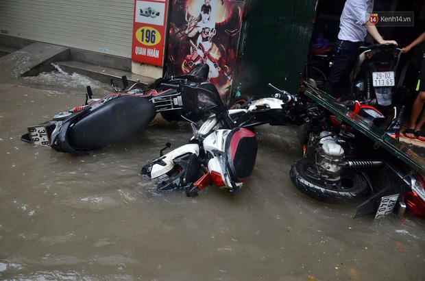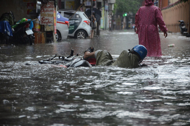 Cơn mưa bất ngờ đổ xuống khiến nhiều khu vực tại Hà Nội ngập lụt nghiêm trọng. Tại một số tuyến đường, người dân lưu thông khá chật vật do nước ngập sâu ngang bánh xe, thậm chí có người đã bị ngã do không thể phát hiện chướng ngại vật.