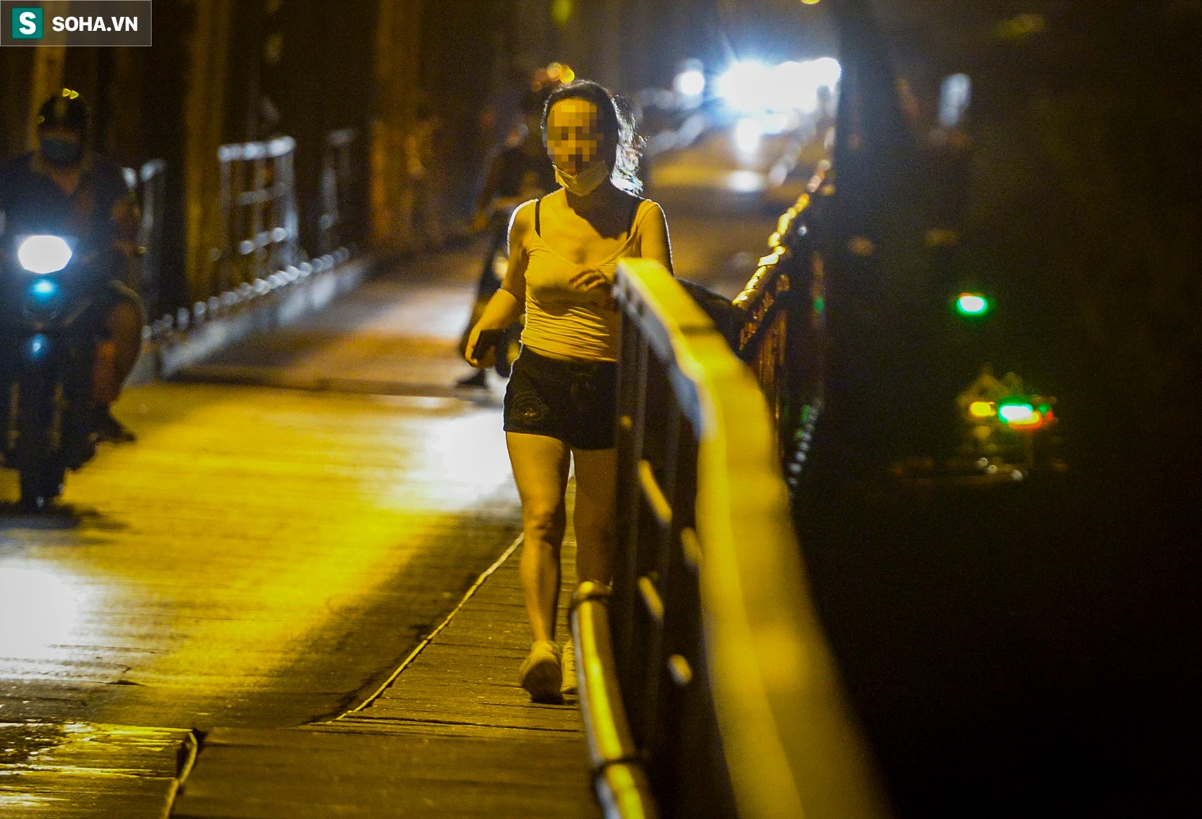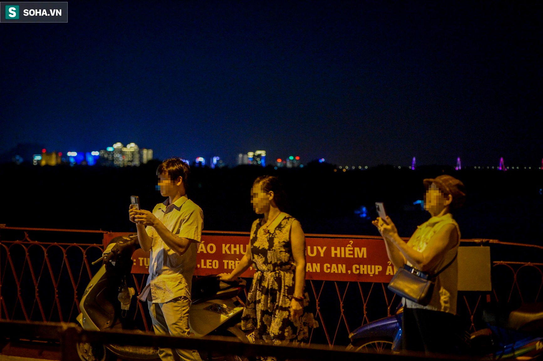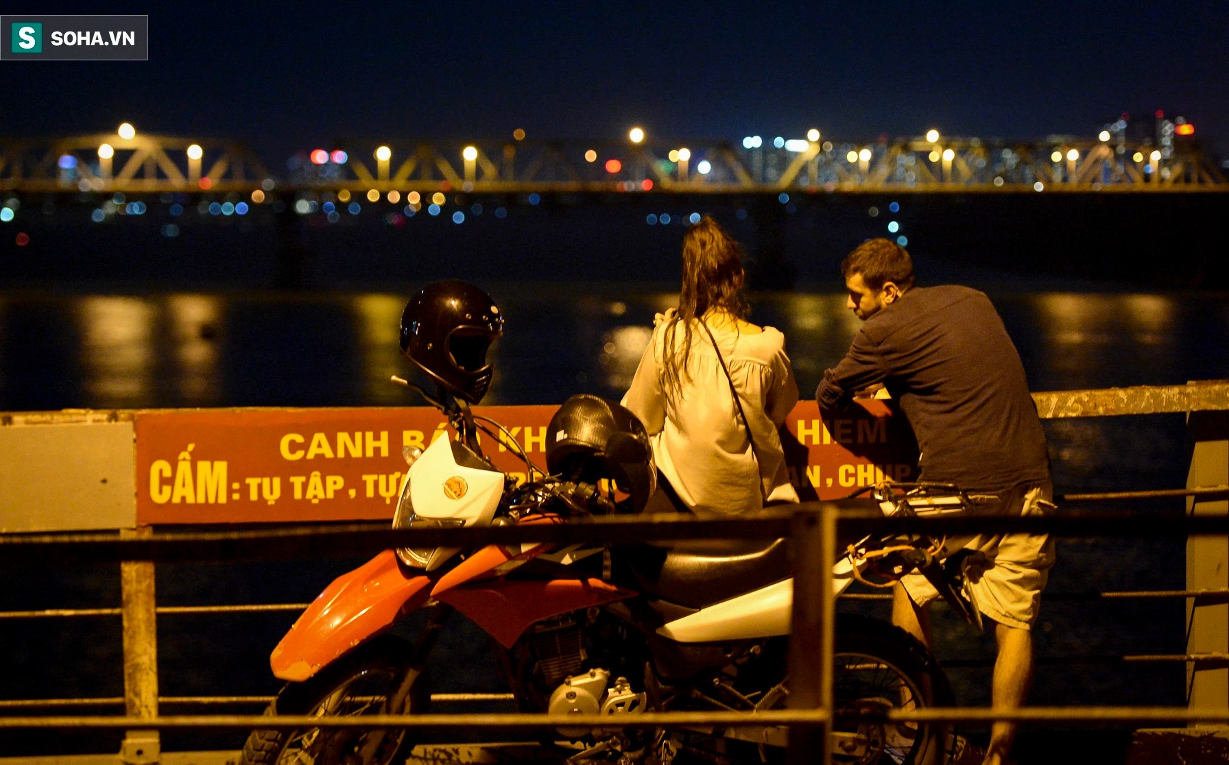Mặc dù Hà Nội đang giãn cách xã hội nhưng vào tối 18/9, tại cầu Long Biên có hàng chục người đi bộ tập thể và nhiều đôi nam nữ ngồi tâm sự, có người còn vào giữa đường tàu tạo dáng chụp ảnh.