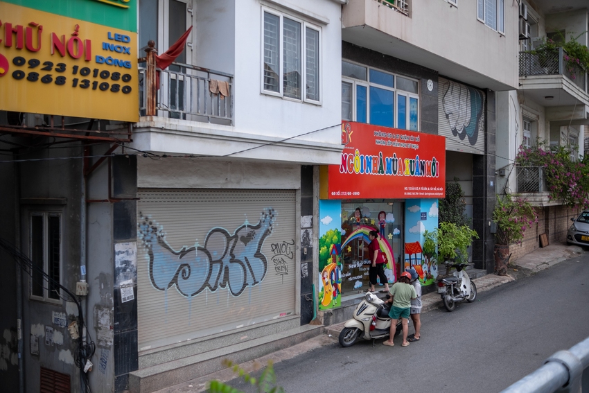 | Tường và cửa cuốn nhà dân trên nhiều tuyến phố Hà Nội bị vẽ bậy |