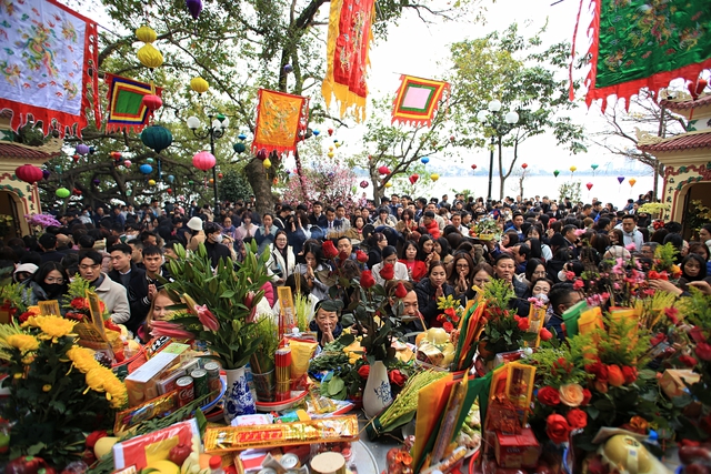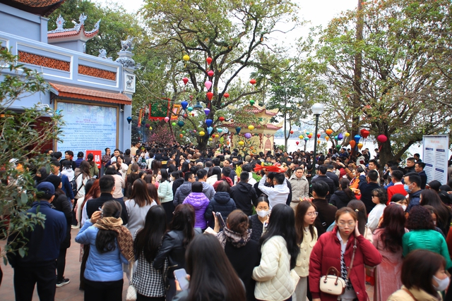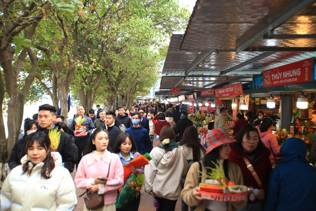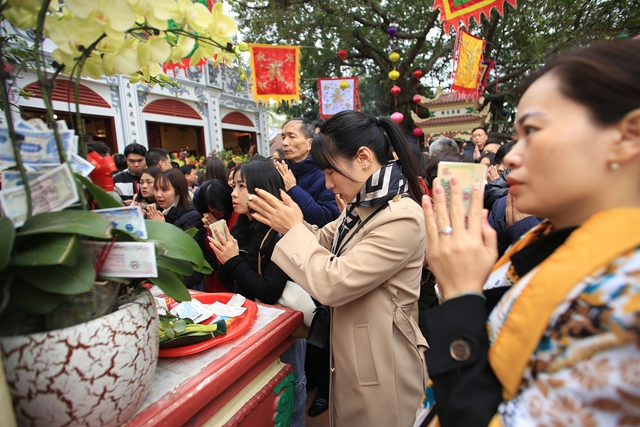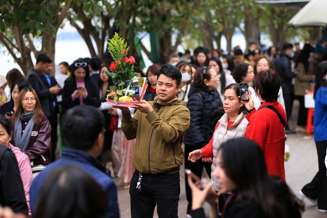 Hôm nay (3/2), hàng nghìn người dân Hà Nội đã đến Phủ Tây Hồ (quận Tây Hồ) để dâng hương, cầu bình an, tài lộc trong ngày làm việc đầu tiên của năm mới.
