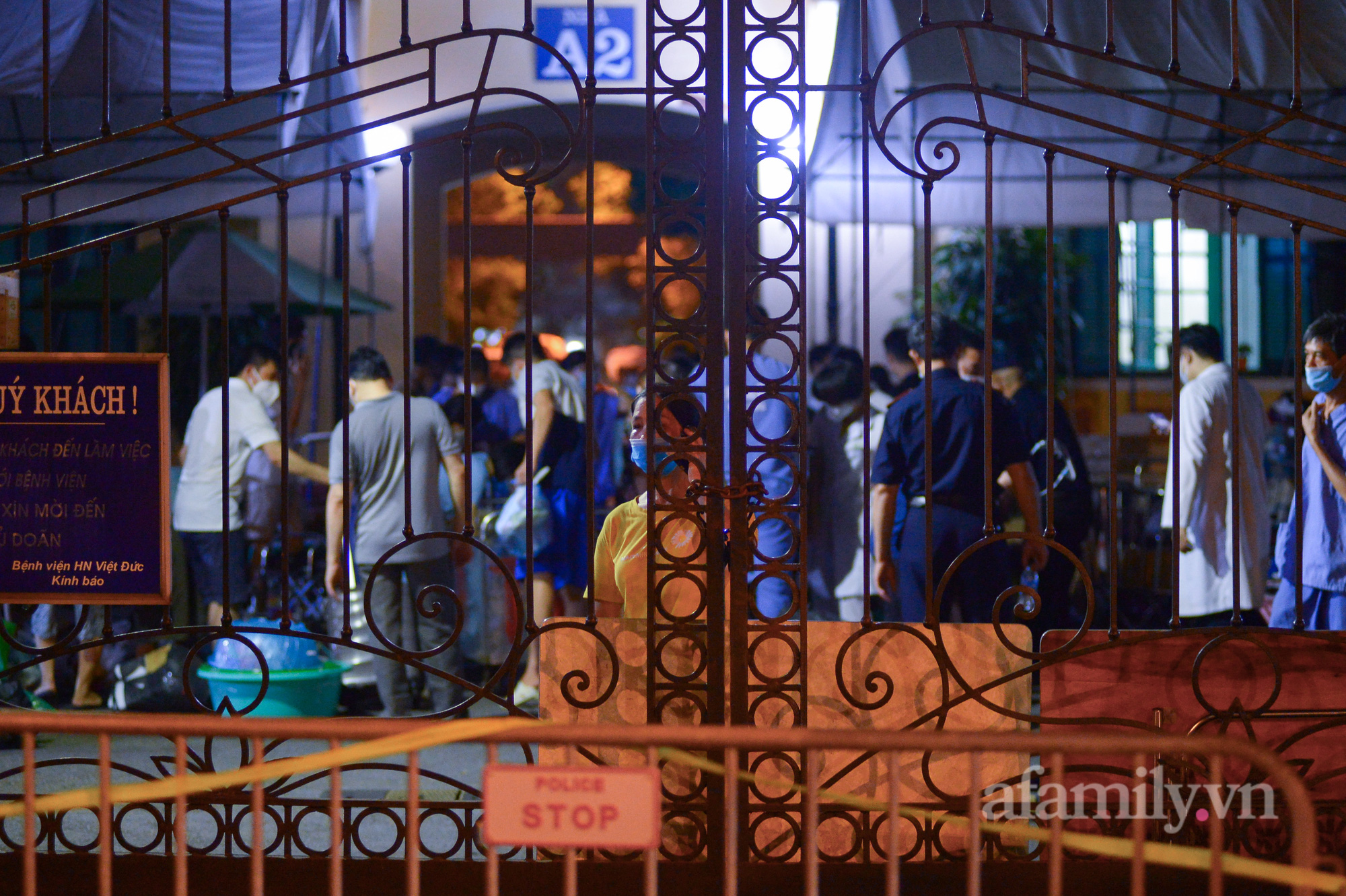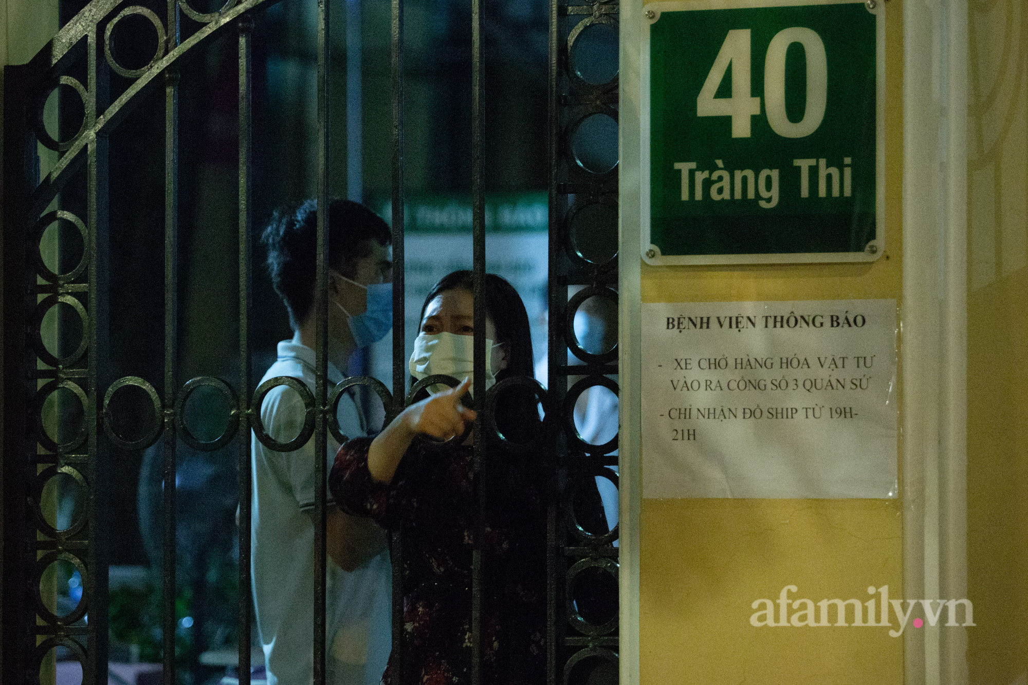 Tối 1/10, rất đông người dân có mặt tại cổng số 1 Bệnh viện Việt Đức tiếp tế nhu yếu phẩm, đồ dùng cho người thân bên trong khu vực phong tỏa. Dù đã quá giờ tiếp nhận đồ, nhiều người vẫn cố nán lại với hi vọng chuyển được đồ cho người thân bên trong.