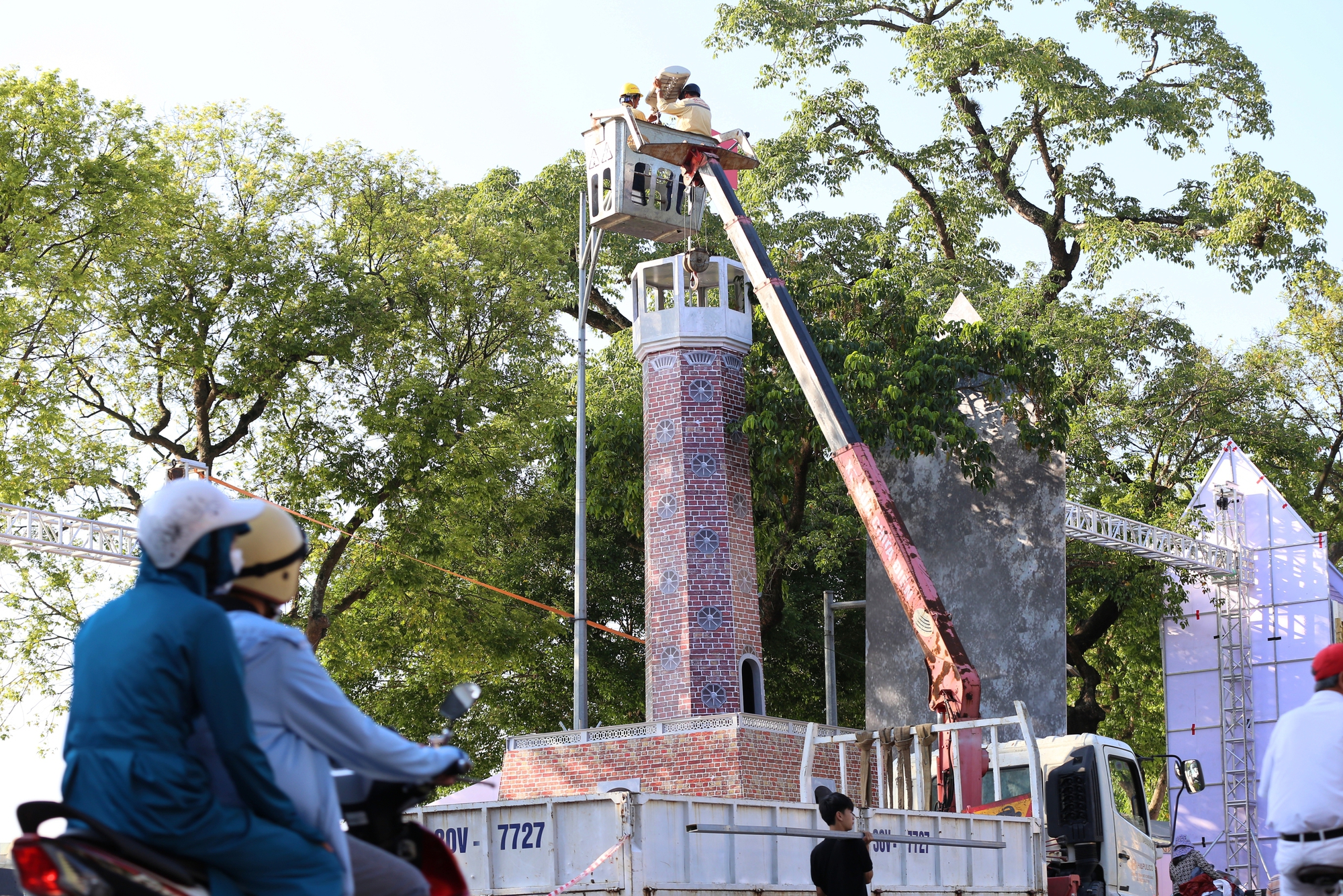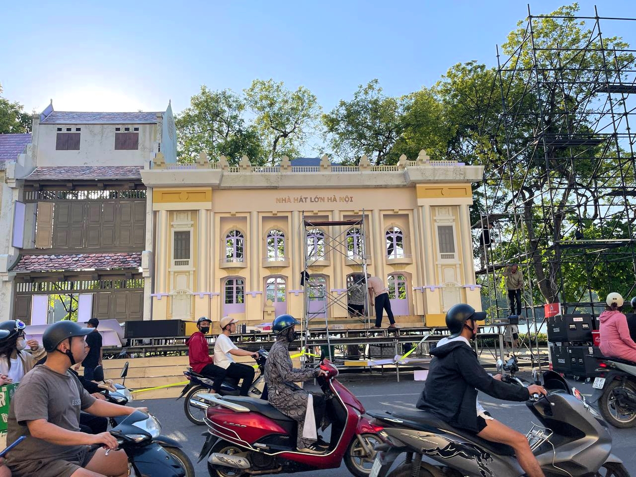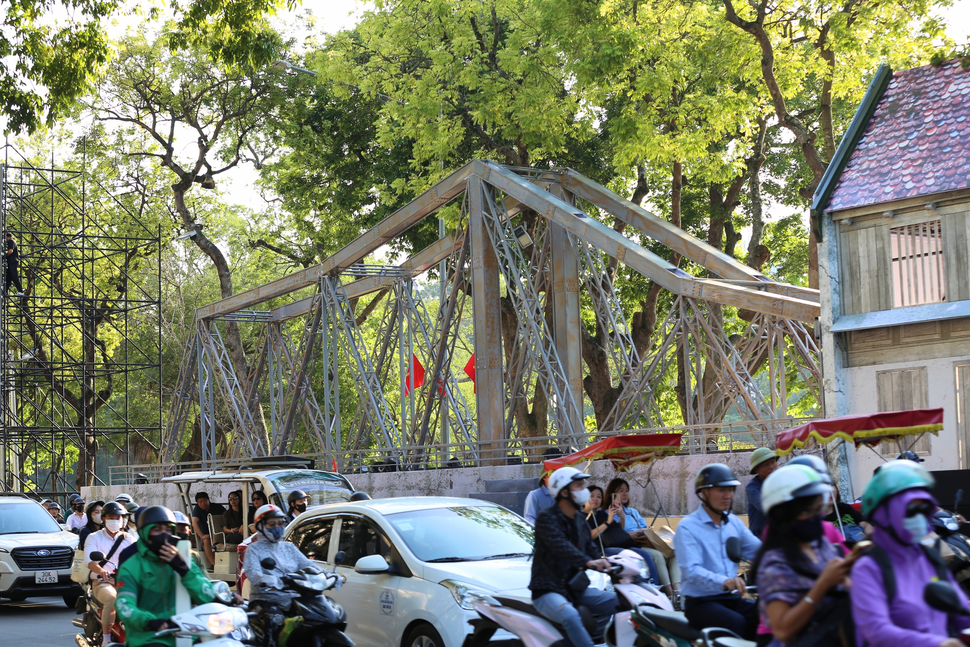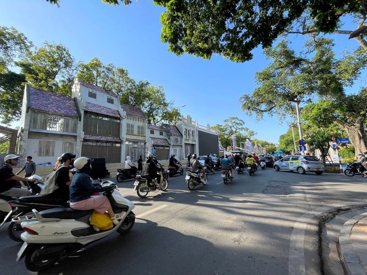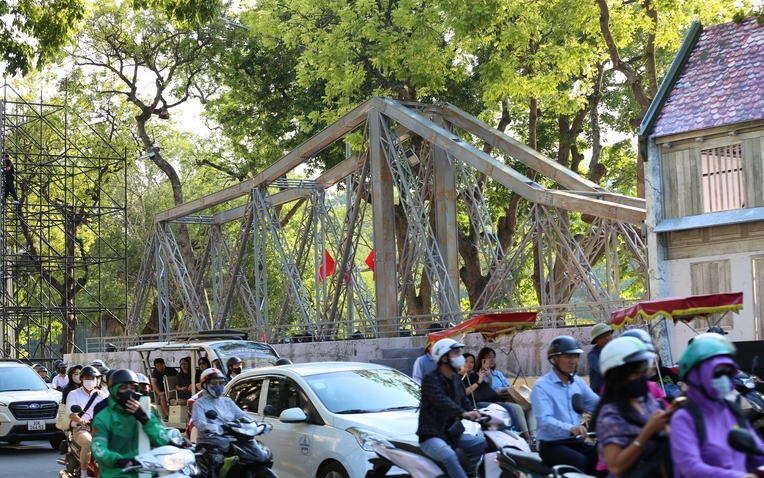 Tại tuyến phố Đinh Tiên Hoàng (quận Hoàn Kiếm), nhiều công trình tiêu biểu như: cầu Long Biên, Nhà hát lớn Hà Nội, chợ Đồng Xuân,... đang được các công nhân tái hiện lại một cách rất tỉ mỉ.