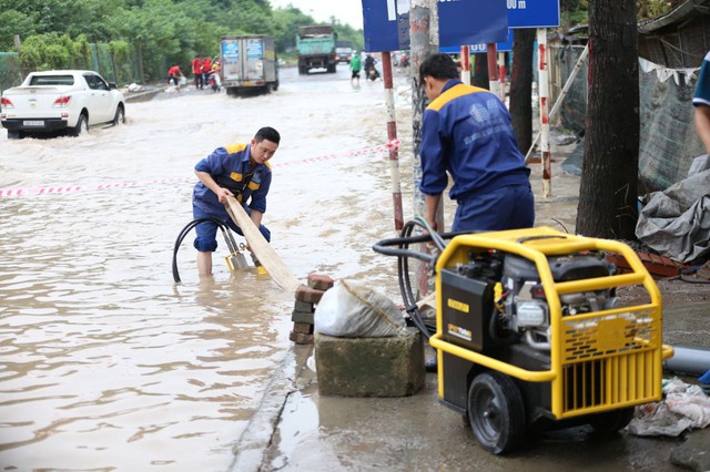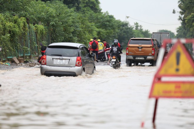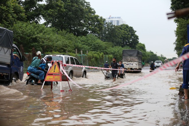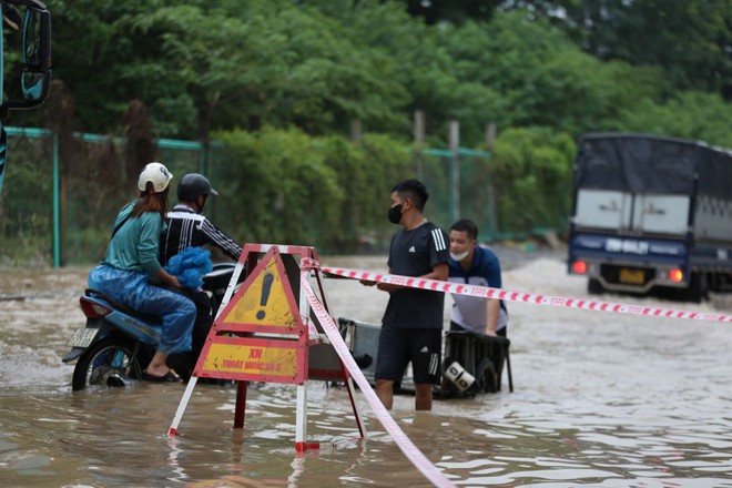 Nhiều đoạn đường tại Hà Nội xảy ra tình trạng ngập lụt sau đêm mưa lớn ngày 22/8.
