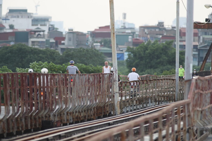 Trên cầu Long Biên, một số thời điểm vẫn xuất hiện đông người trong những ngày Hà Nội thực hiện giãn cách xã hội theo Chỉ thị 16 để phòng dịch Covid-19.