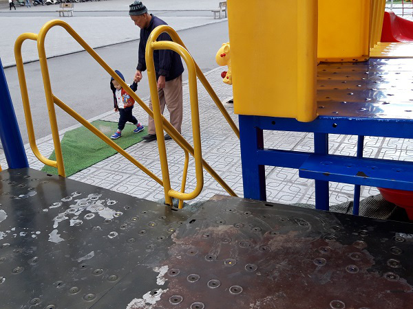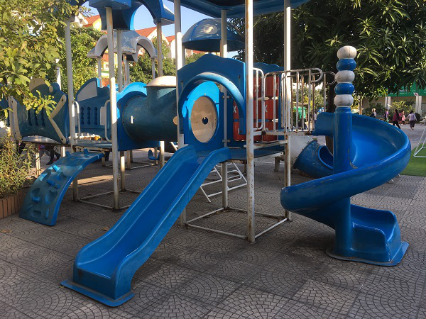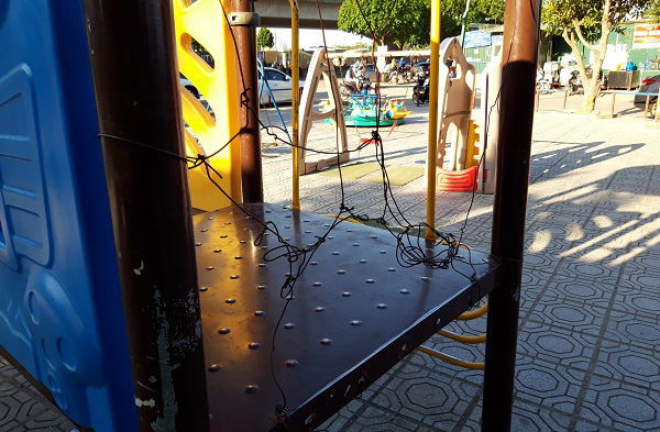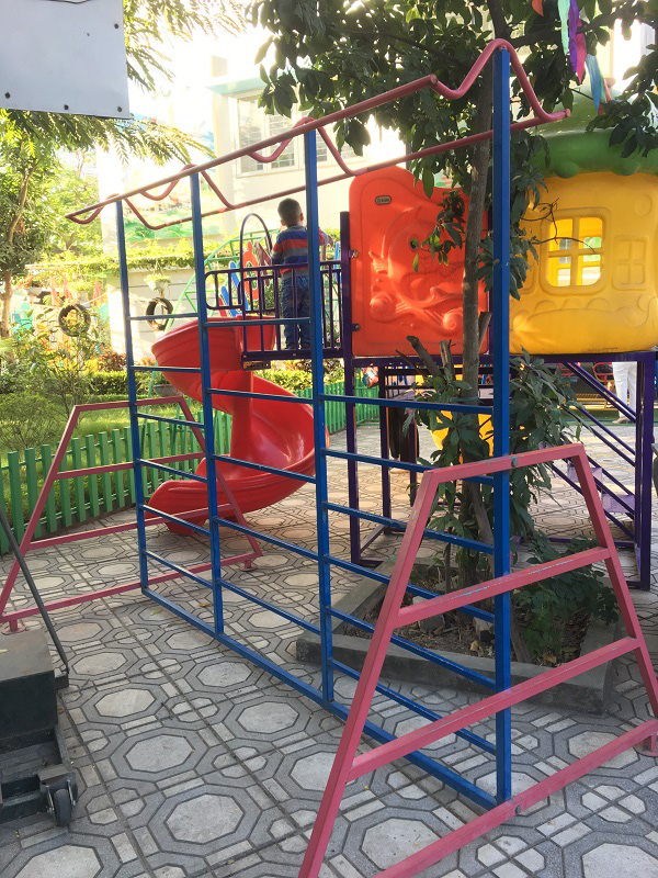 Thiết bị hư hỏng, có nhiều khe, kẽ hoặc không được lót thảm…vô tình tạo thành những “chiếc bẫy” với trẻ em tại một số sân trường, khu vui chơi dành cho trẻ em ở Hà Nội.