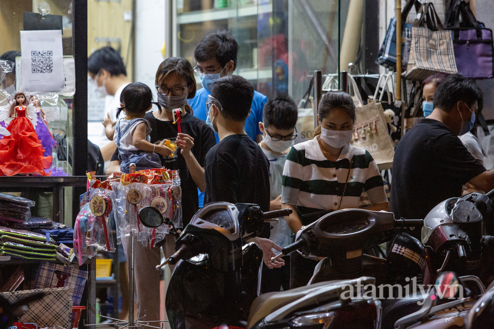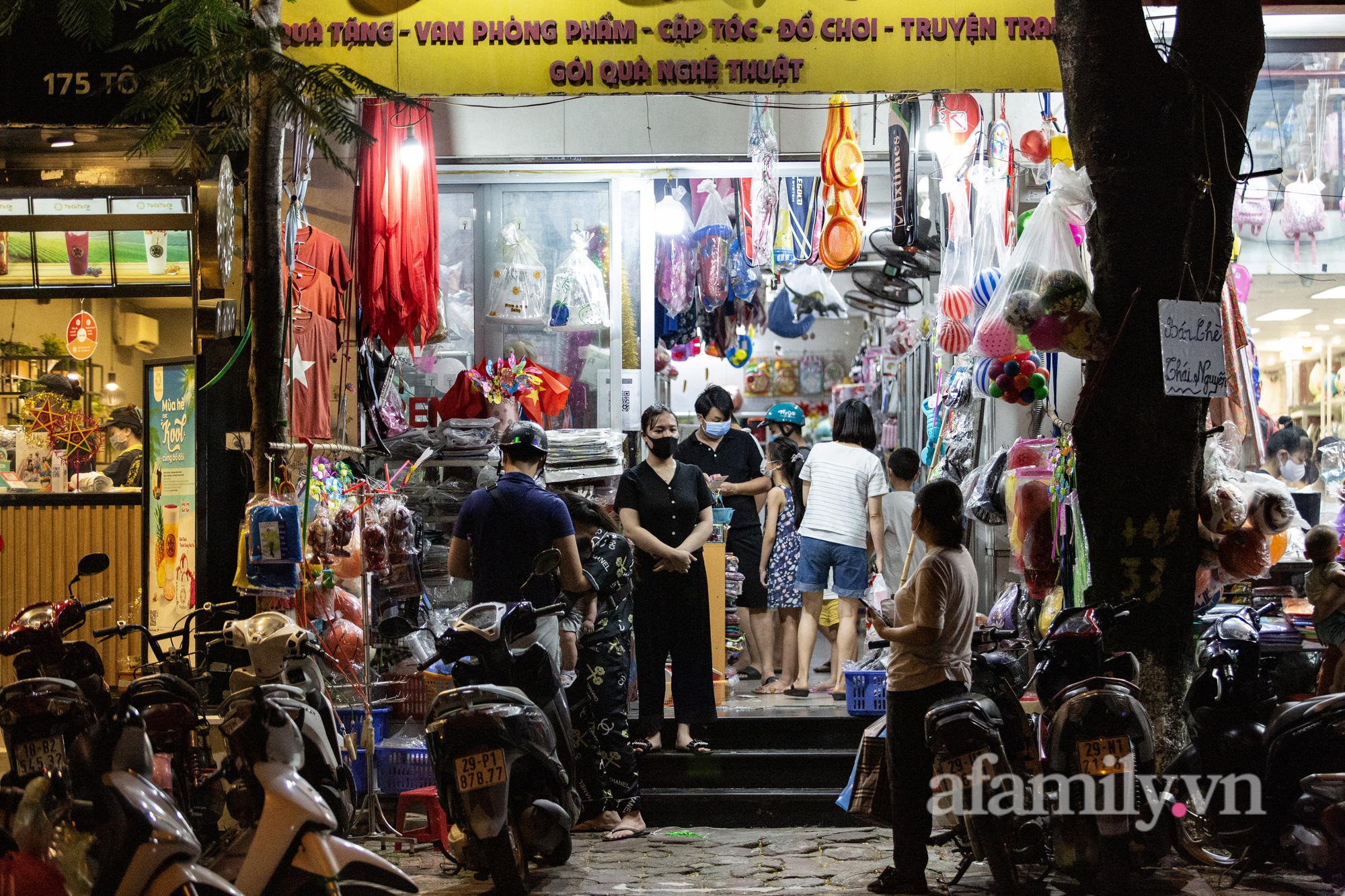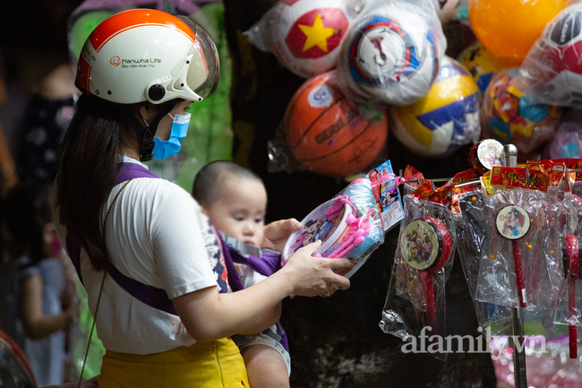 Tối 20/9, rất đông người dân đổ về các số hiệu sách, cửa hàng văn phòng phẩm, quà lưu niệm trên các tuyến phố Tô Hiệu, Trần Thái Tông, Xuân Thủy (Hà Nội) mua đồ chơi Trung thu cho trẻ em.