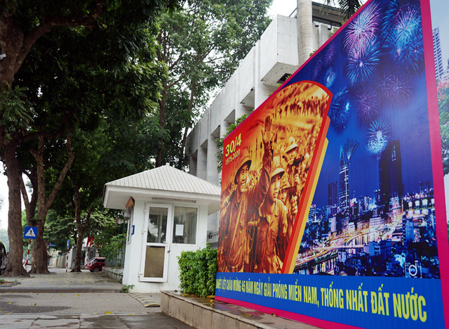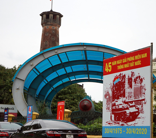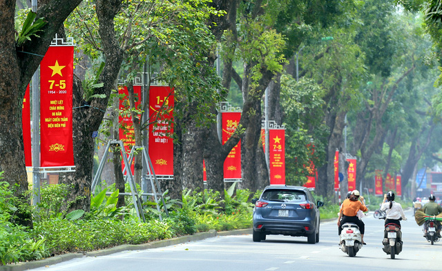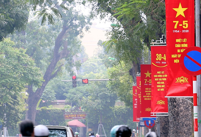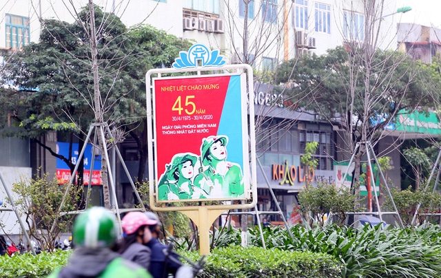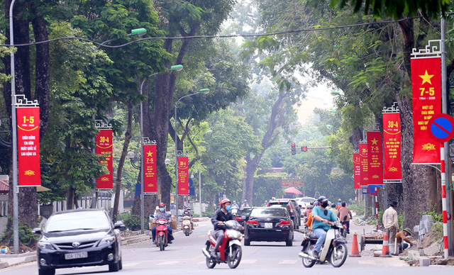Rất nhiều tuyến đường tại Hà Nội hiện nay đã được trang trí cờ hoa, băng-rôn chào mừng 45 ngày Giải phóng miền Nam, thống nhất đất nước (30/4) và 134 năm ngày Quốc tế lao động (1/5).