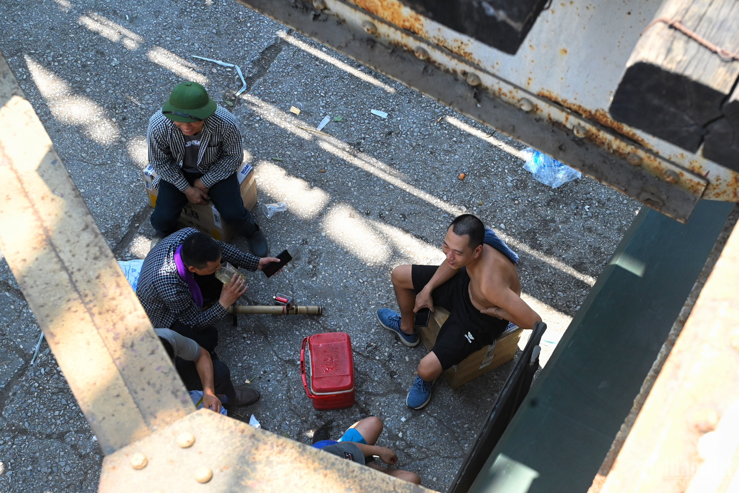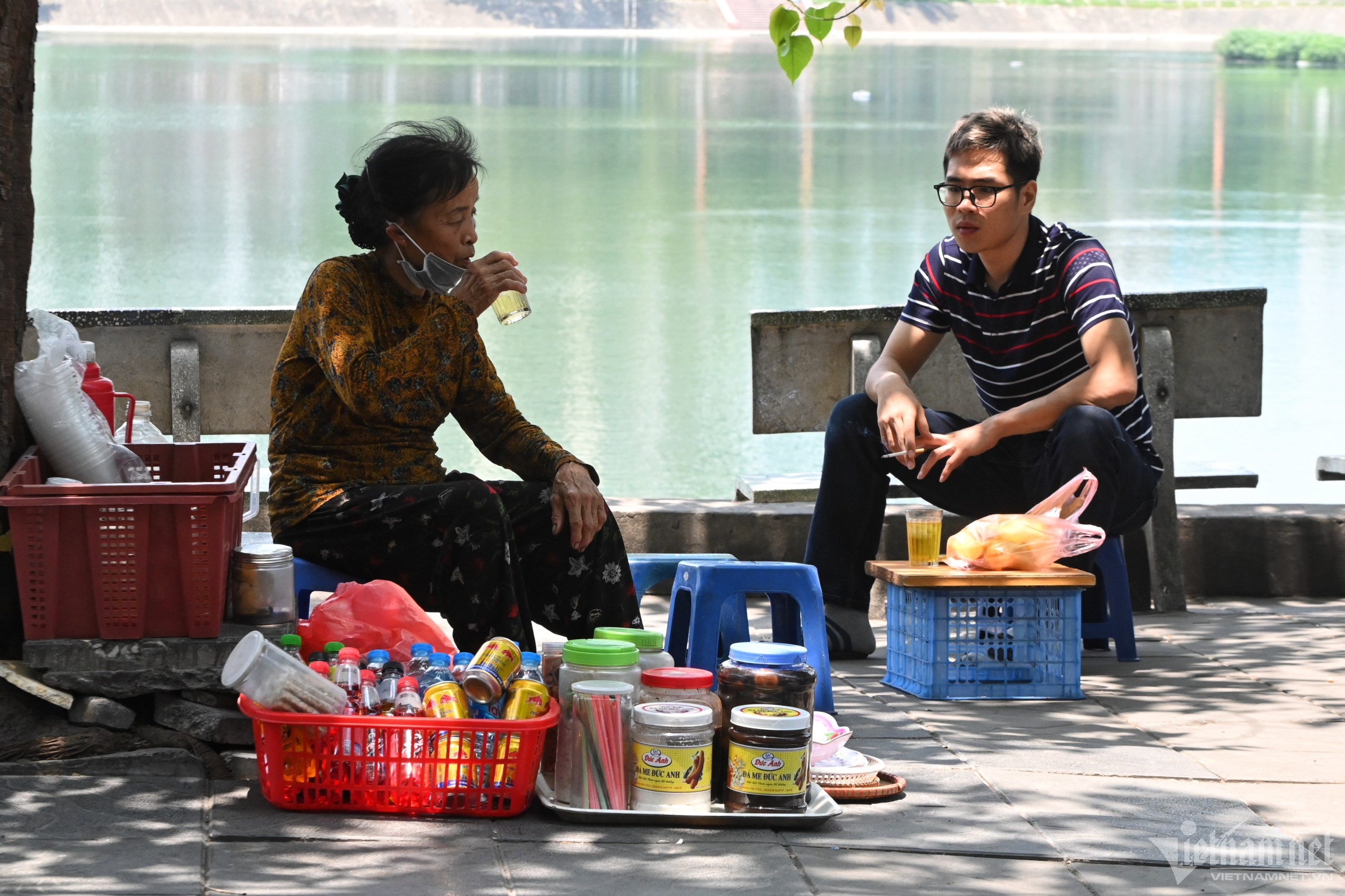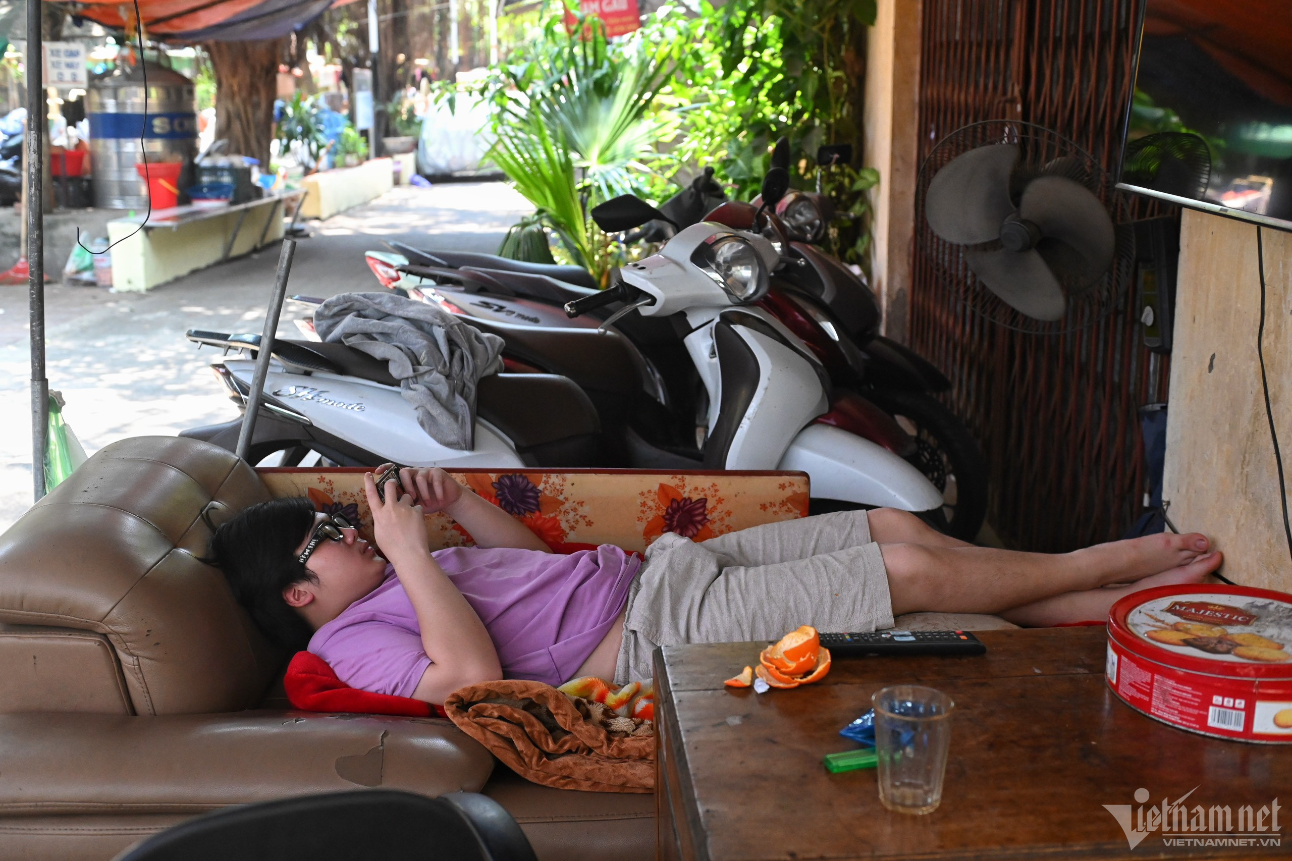Trưa 5/5, nhiệt độ tại Hà Nội lên tới 39 độ C, nhiều người đi đường phải mặc trang phục chống nắng, che chắn kín cơ thể hoặc tìm tới bóng cây để giảm oi bức.