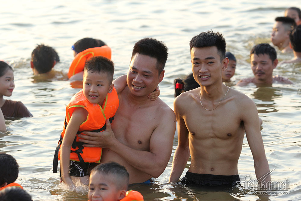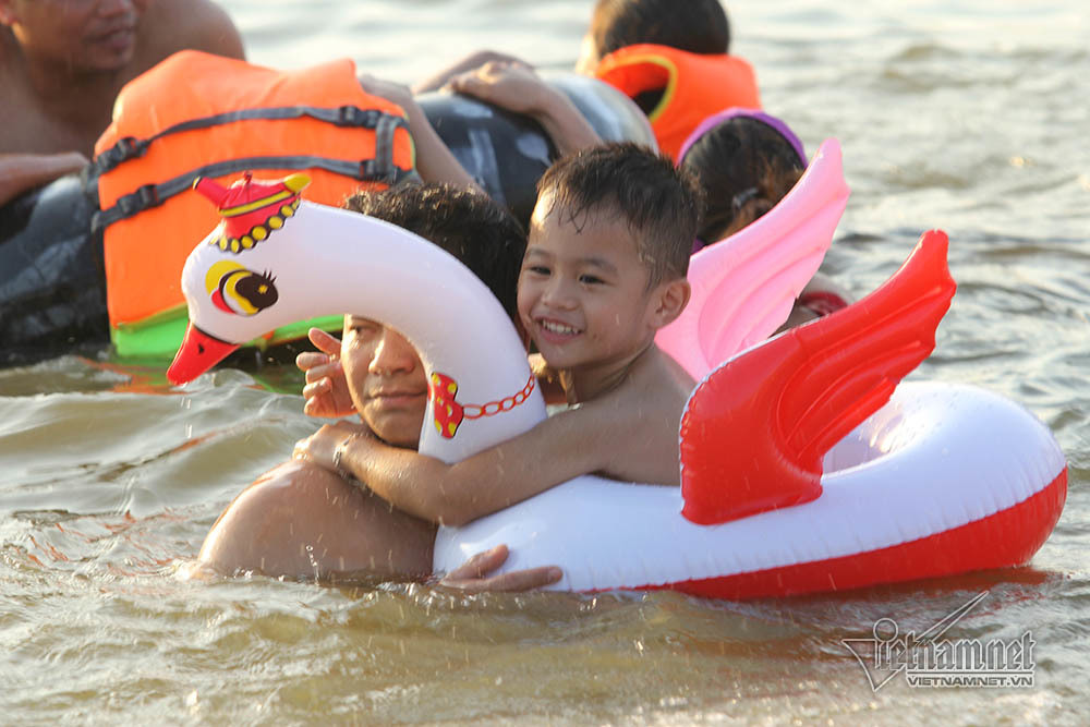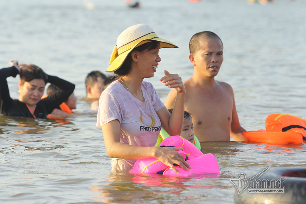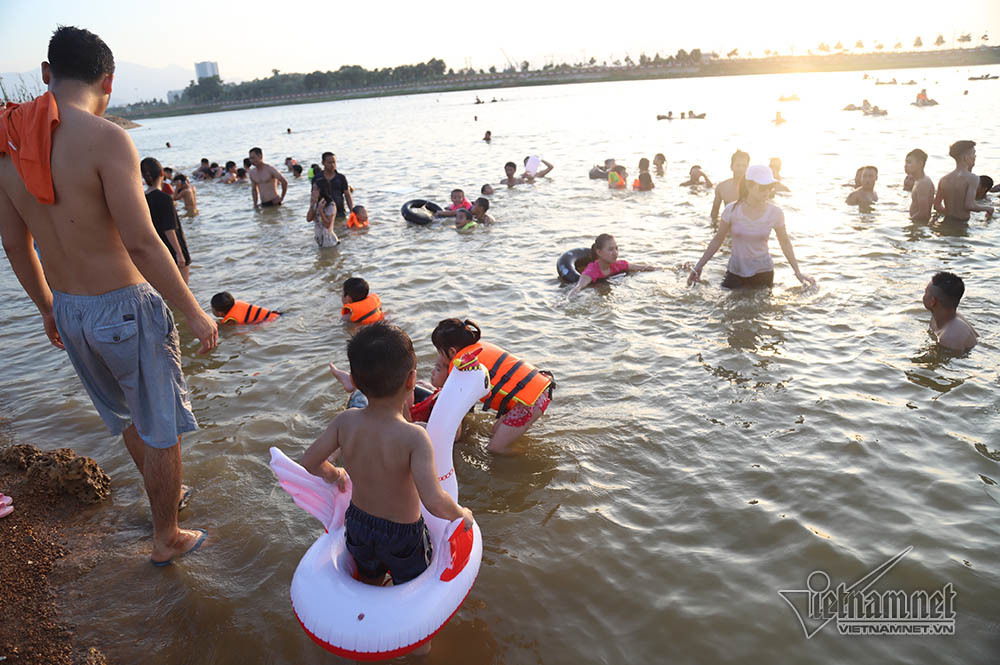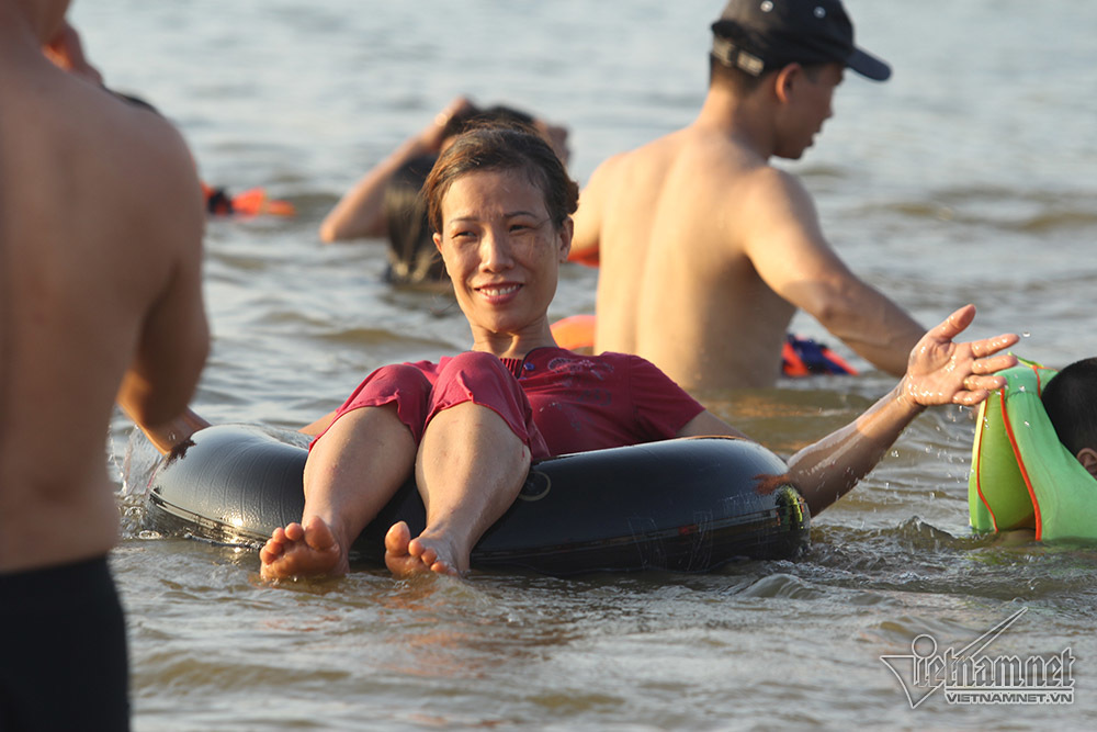 Hà Nội nóng rát, 'bãi biển' ngoại thành ngàn người tắm mát