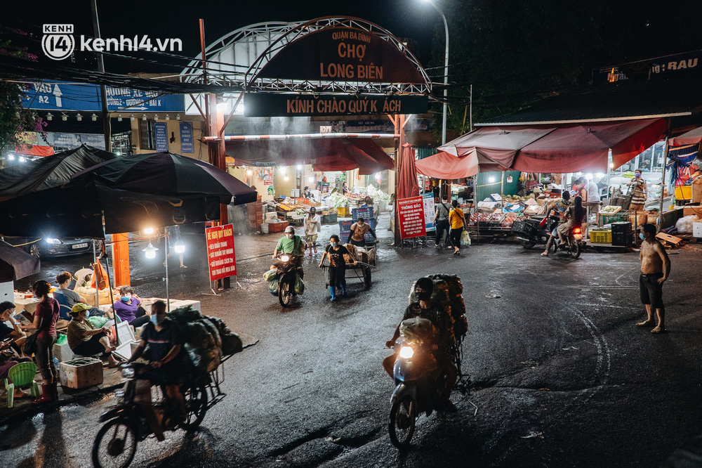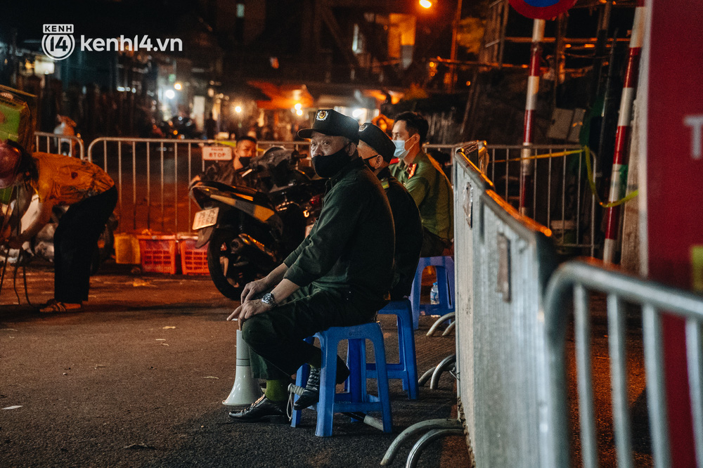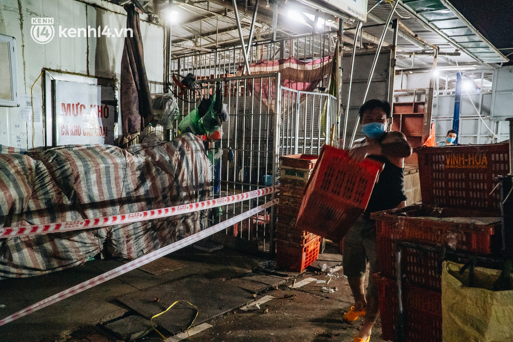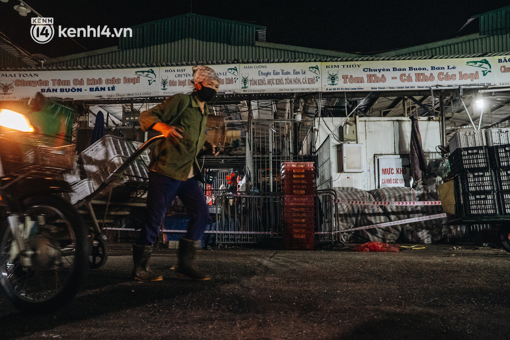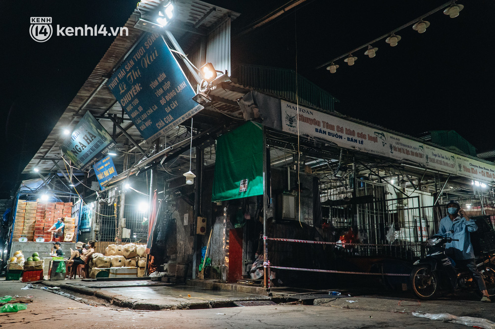 Chính quyền địa phương chăng dây, dựng rào trước khu vực kinh doanh hải sản, bên trong chợ Long Biên (quận Ba Đình, Hà Nội) sau khi ghi nhận một ca Covid-19 từng đến đây mua bán.