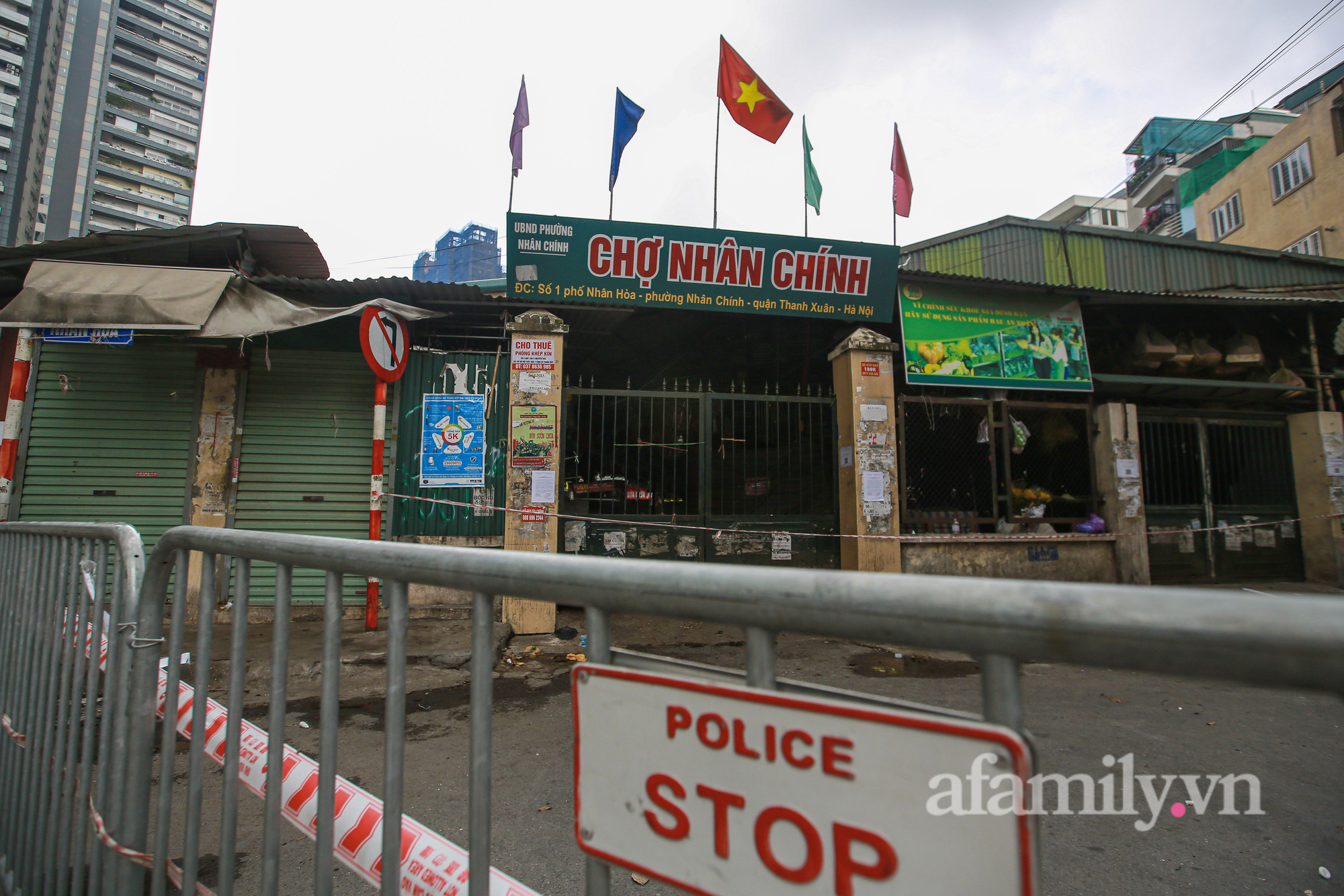 Chợ Nhân Chính (quận Thanh Xuân, Hà Nội) bị chính quyền sở tại phong tỏa, dán thông báo tạm dừng hoạt động từ 5 giờ sáng nay (26/8) vì ca dương tính SARS-CoV-2 ở ổ dịch phường Thanh Xuân Trung từng đến chợ mua đồ.
