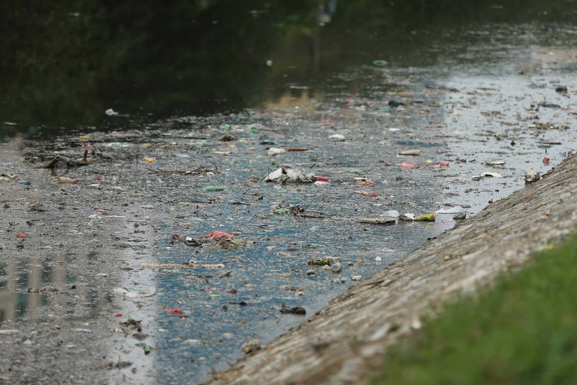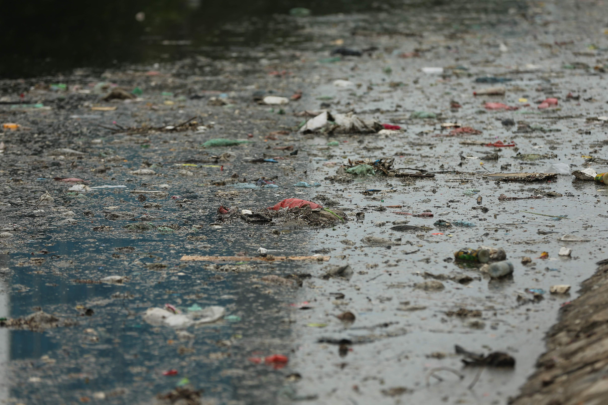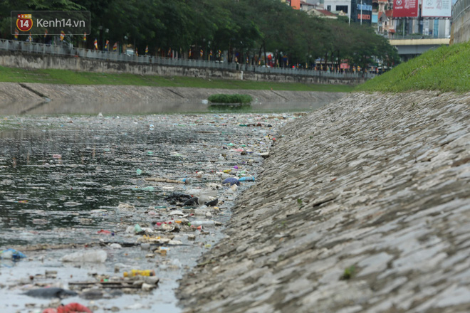 Sau những ngày nghỉ Tết Nguyên đán 2020, rác thải sinh hoạt, nước thải từ các nhà máy và khu dân cư lân cận thải trực tiếp ra khu vực sông Tô Lịch khiến dòng nước bốc mùi hôi thối.