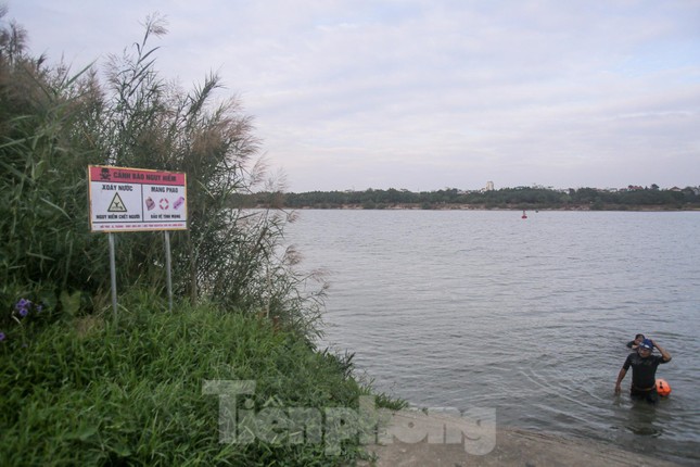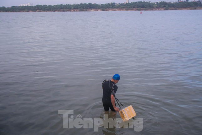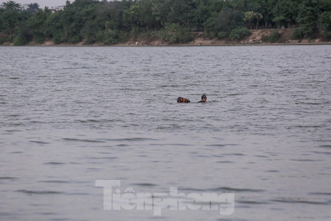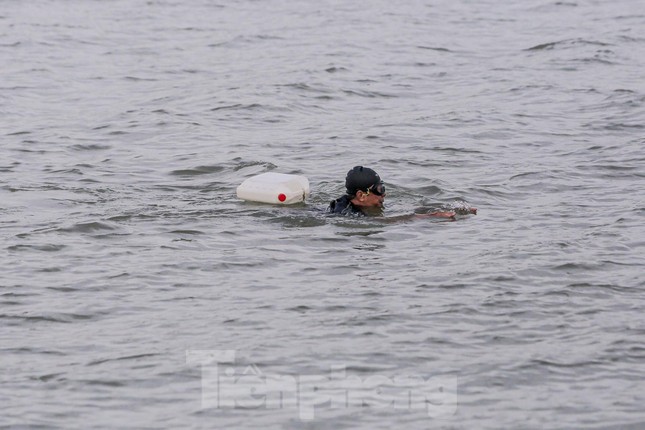 Bất chấp nhiệt độ ở Hà Nội những ngày này xuống đến 14-15 độ C, nhiều người vẫn không bỏ thói quen bơi lội, "tắm tiên" trên sông Hồng, khu vực gần chân cầu Long Biên (Hà Nội) lúc sáng sớm hay chiều tà.