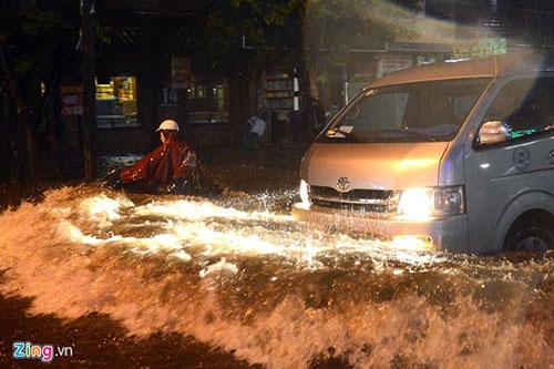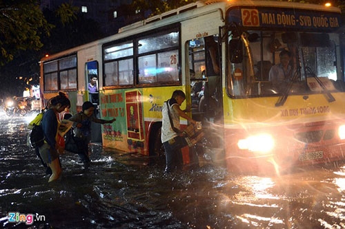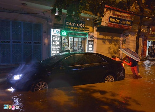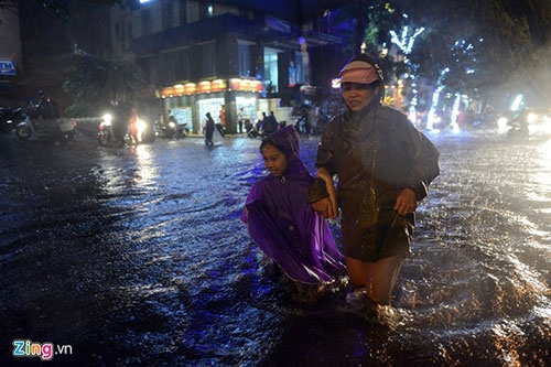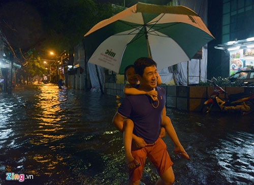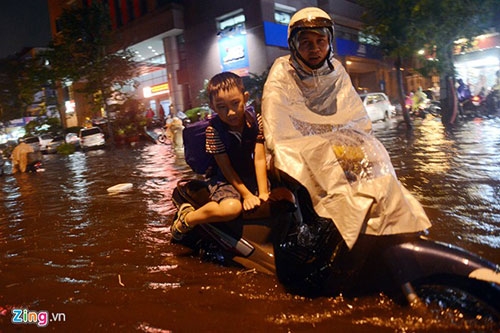 >> Người Hà Nội bì bõm lội nước sau cơn mưa lớn