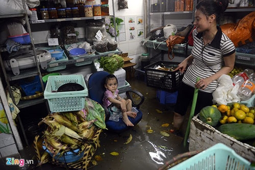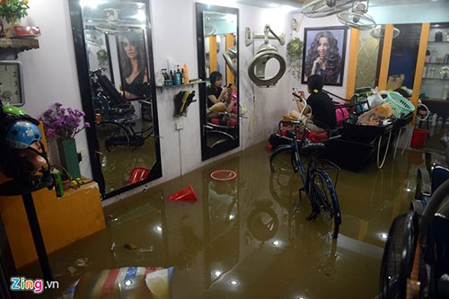 Có hộ bị nước tấn công vào tận sâu bên trong. Ảnh: Anh Tuấn. |