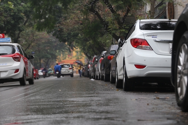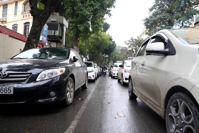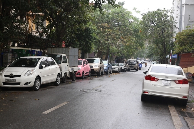 Sáng 7/3, các phương tiện đỗ thẳng hàng theo vạch kẻ trên phố Dã Tượng, không xuất hiện tình trạng ùn ứ phương tiện như thời điểm ôtô đỗ cả hai bên lòng đường. |