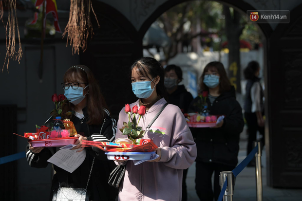 Sáng 14/2 tức mồng 3 Tết Nguyên đán, nhiều bạn trẻ đã tới chùa Hà để cầu may mắn, công danh và tình duyên.
