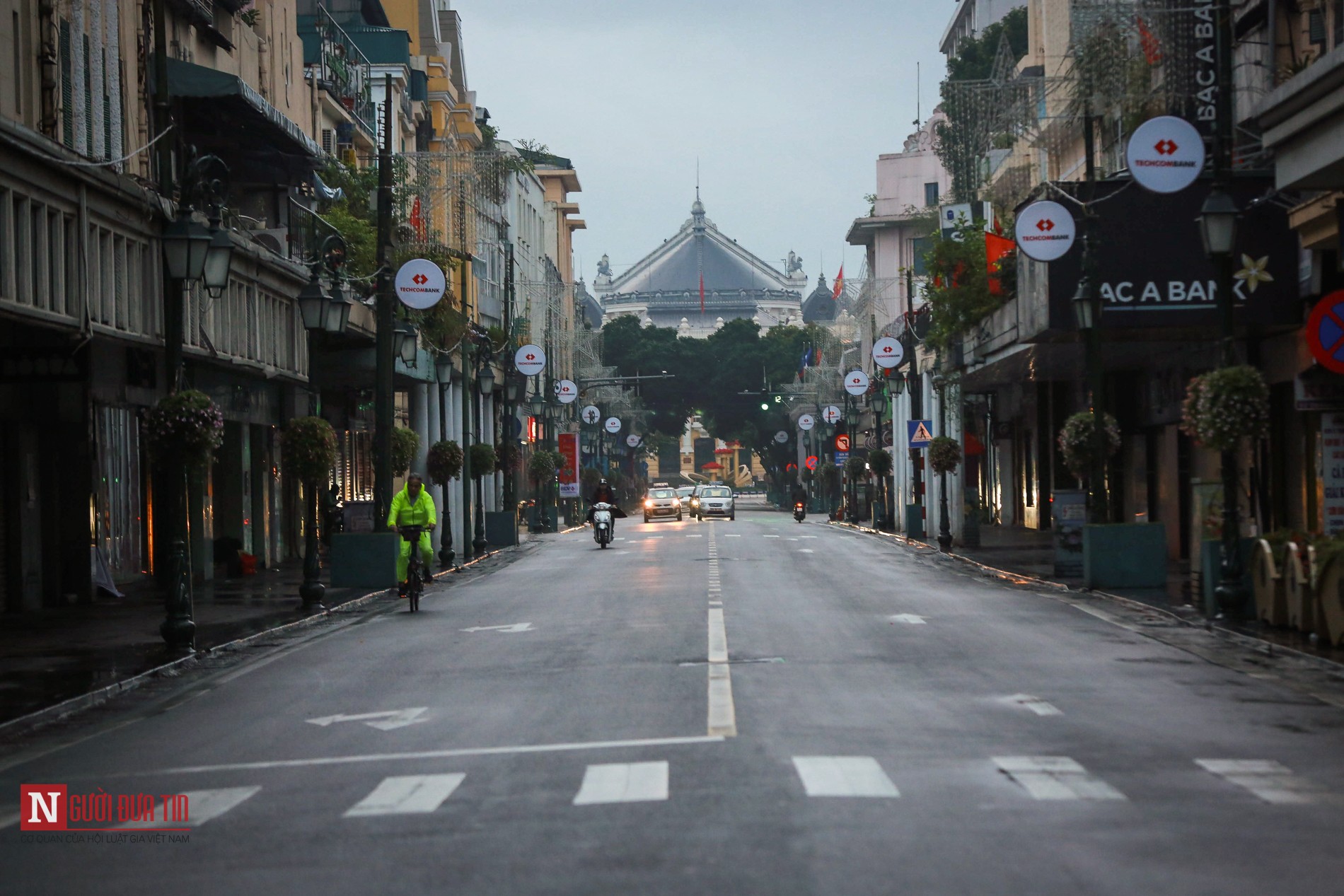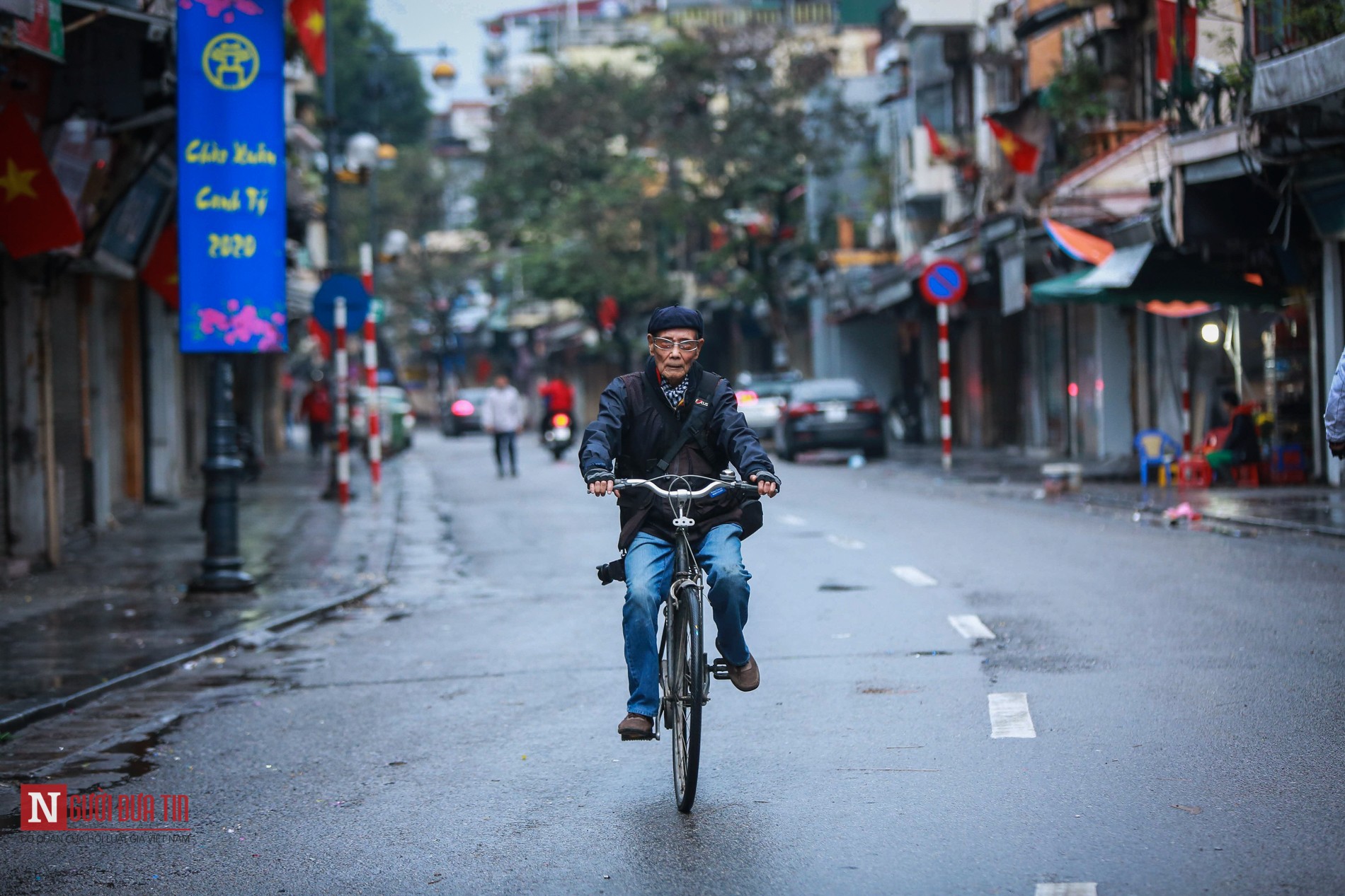 Không còn tiếng còi xe ồn ã, không còn sự hối hả, Hà Nội bình yên, vắng lặng trong ngày đầu xuân năm mới.