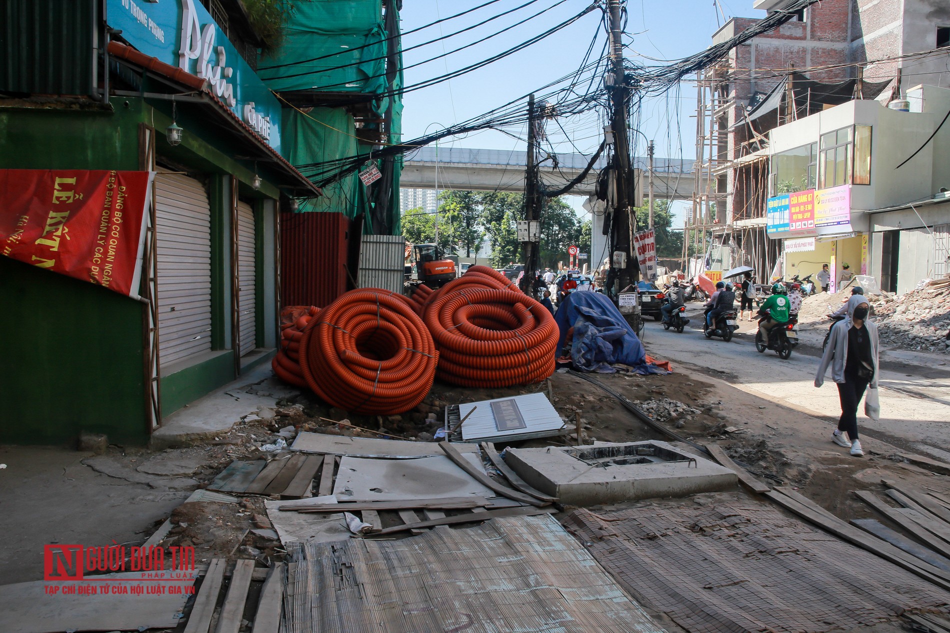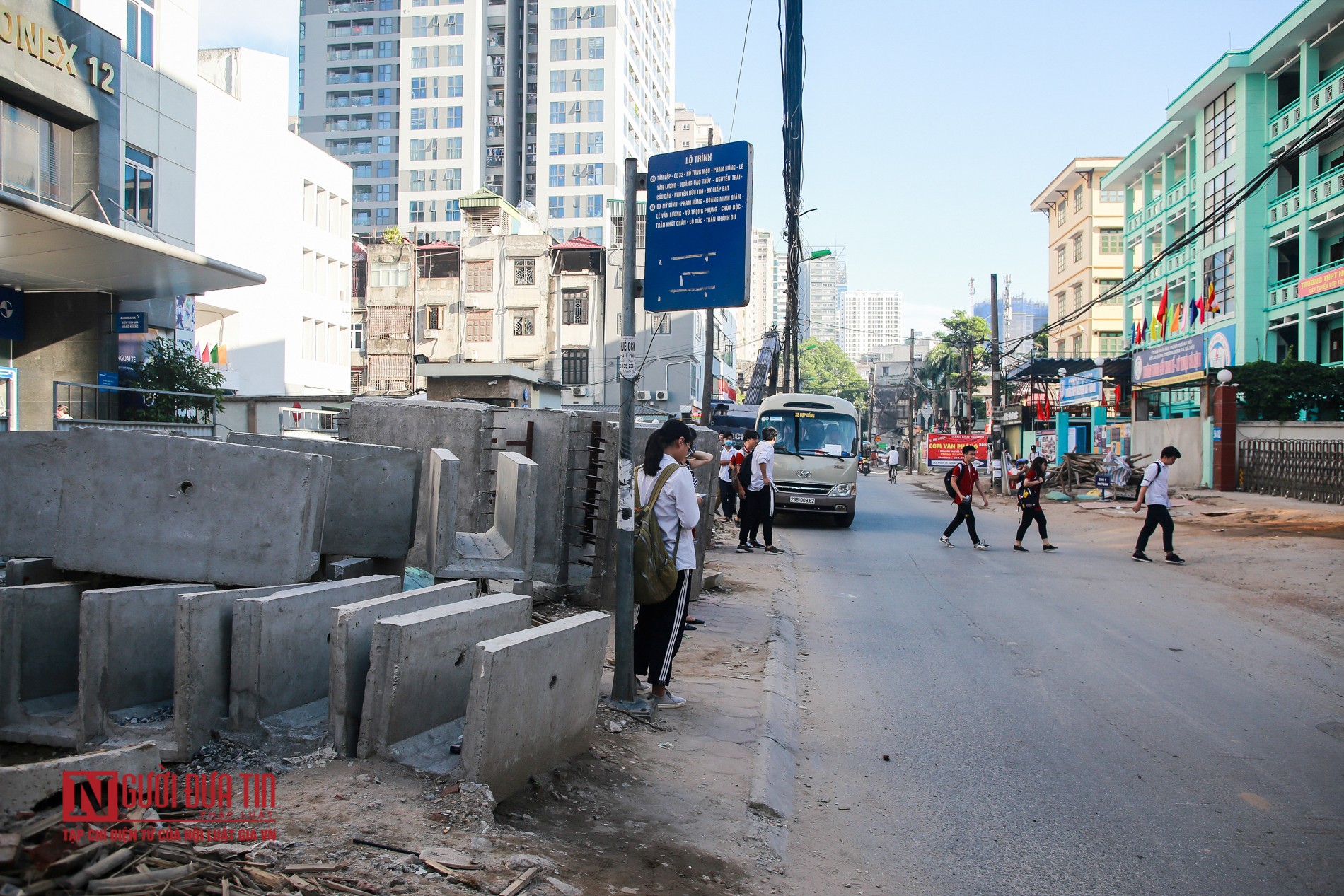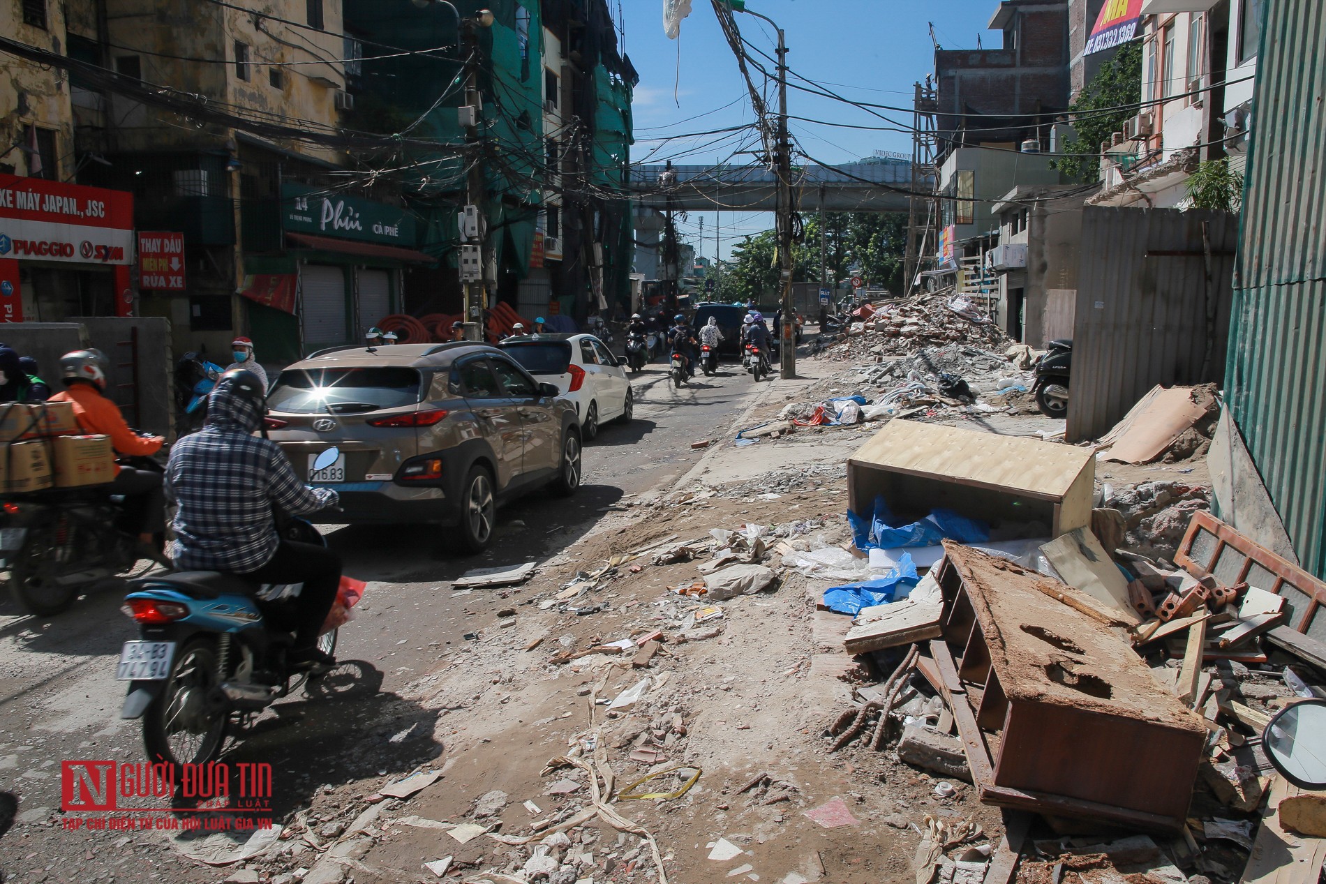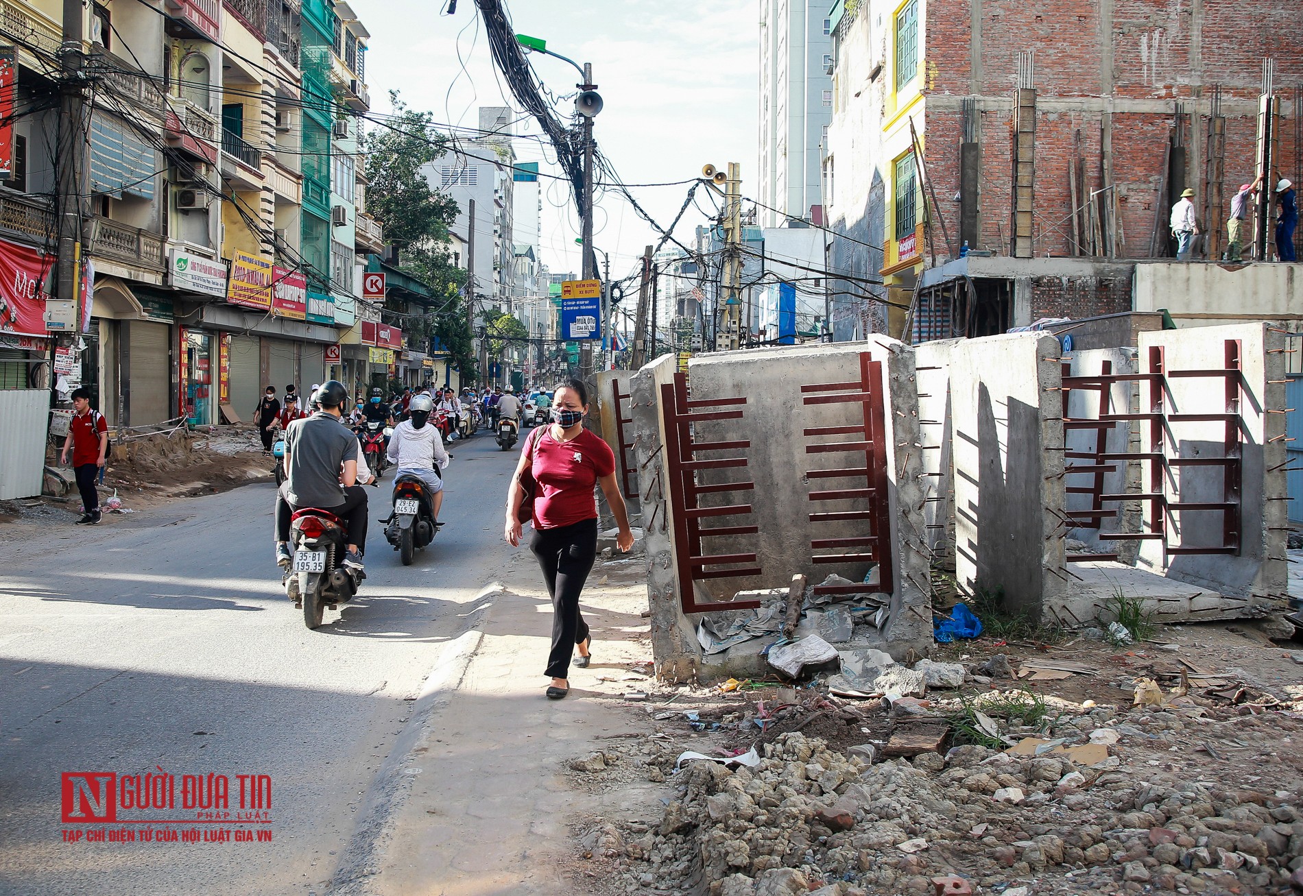 Do thi công với tốc độ chậm, đến nay, hệ thống vỉa hè hai bên hành lang, cống thoát nước đường Vũ Trọng Phụng (quận Thanh Xuân, TP. Hà Nội) vẫn bừa bộn, không còn lối đi cho người đi bộ, gây nguy cơ mất an toàn giao thông cao.