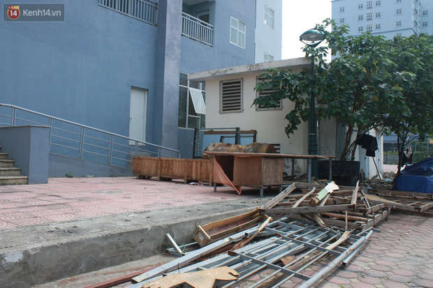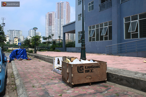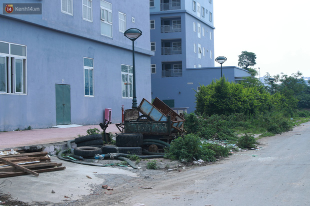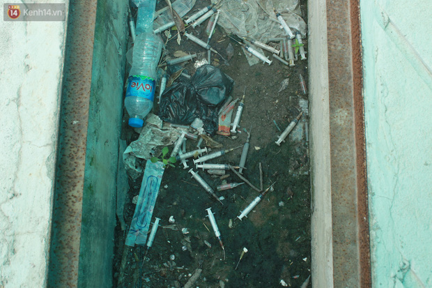 Không có người sinh sống, dọn dẹp nên cây cỏ, rác thải bủa vây xung quanh toà nhà. Thậm chí, bên trong còn la liệt kim tiêm do các con nghiện để lại.