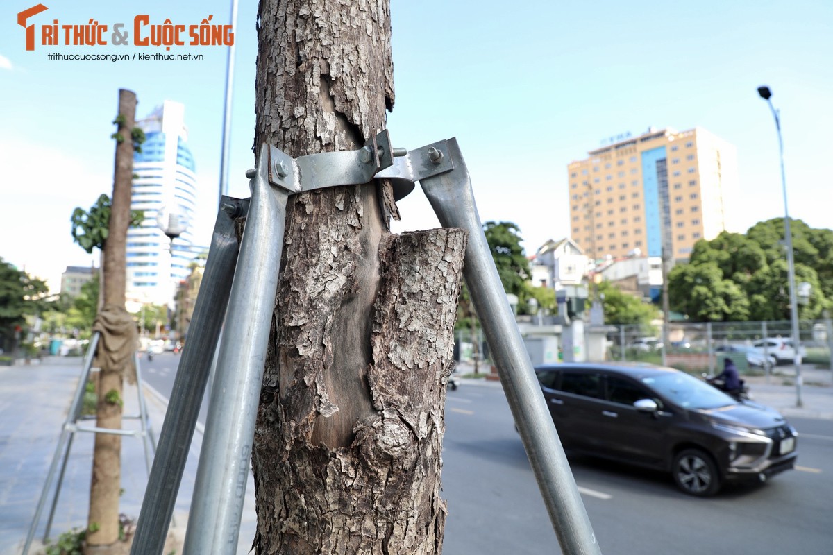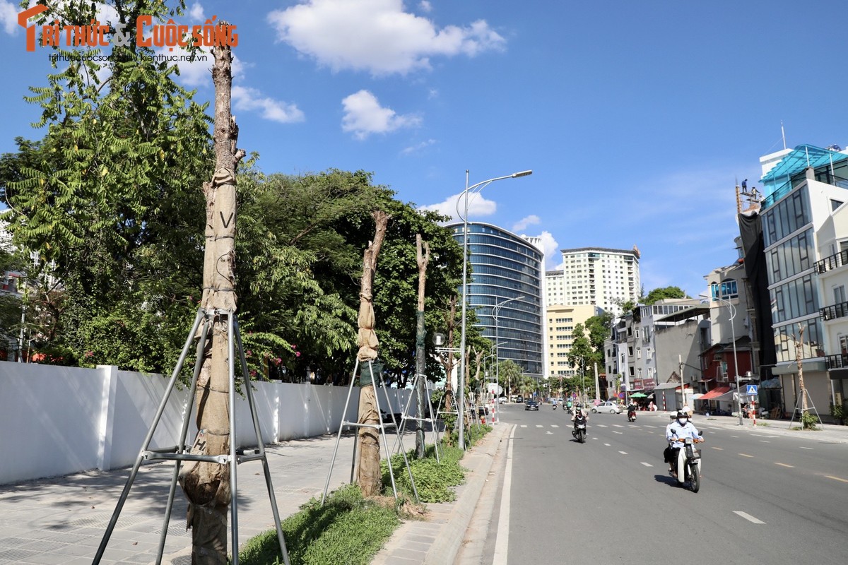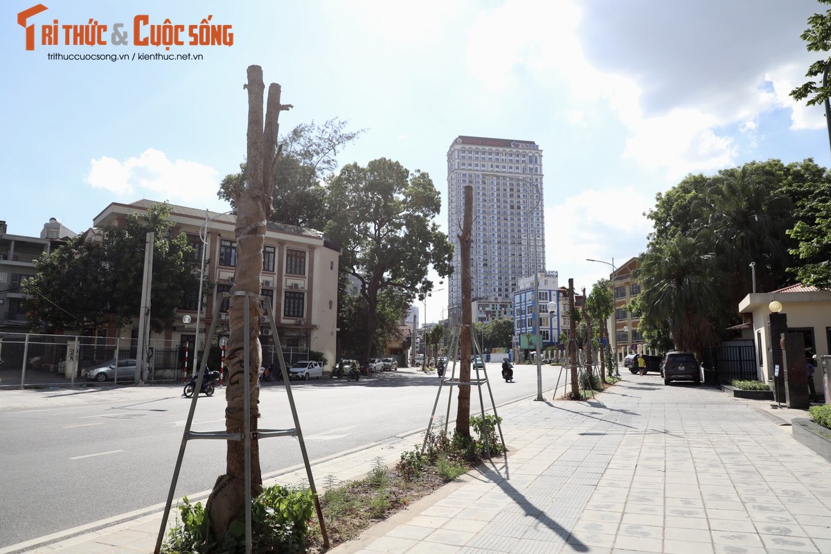 Ghi nhận ngày 25/7, dù mới được thay lại, nhưng hàng loạt cây trên đường Huỳnh Thúc Kháng kéo dài (quận Đống Đa, Hà Nội) lại tiếp tục chết khô.