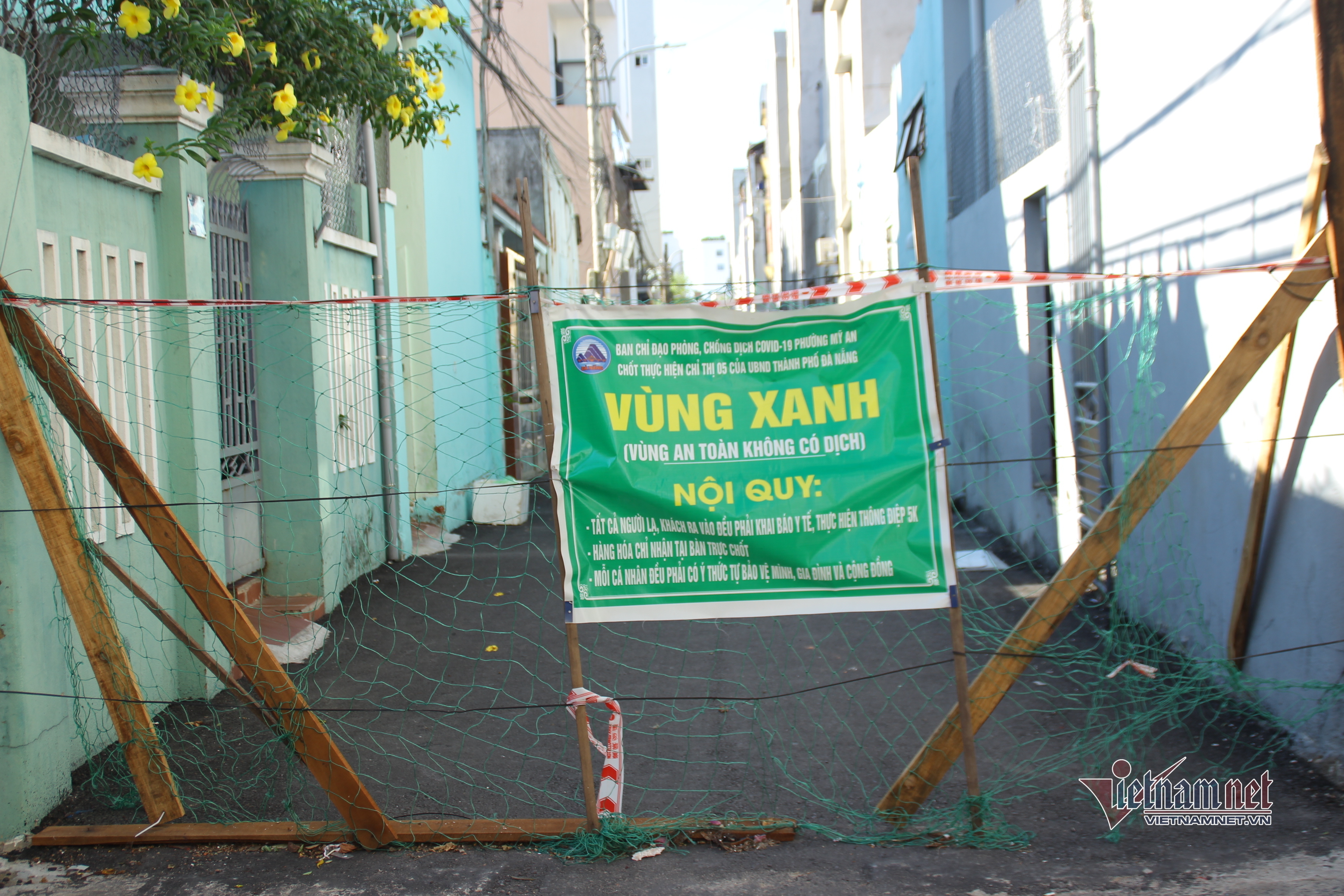 Tại một số khu dân cư, hẻm nhỏ “vùng xanh” vẫn giăng dây và kiểm tra người ra vào.