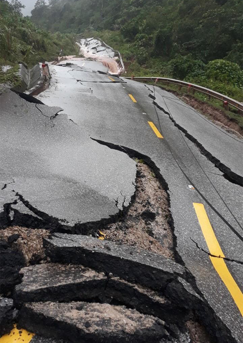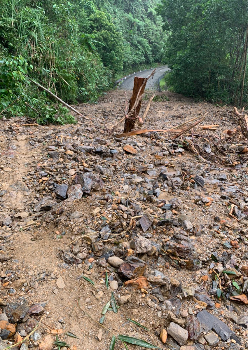 Đoạn đường tại km 74+415 quốc lộ 49 qua tỉnh Thừa Thiên Huế bị sạt lở ta luy âm.