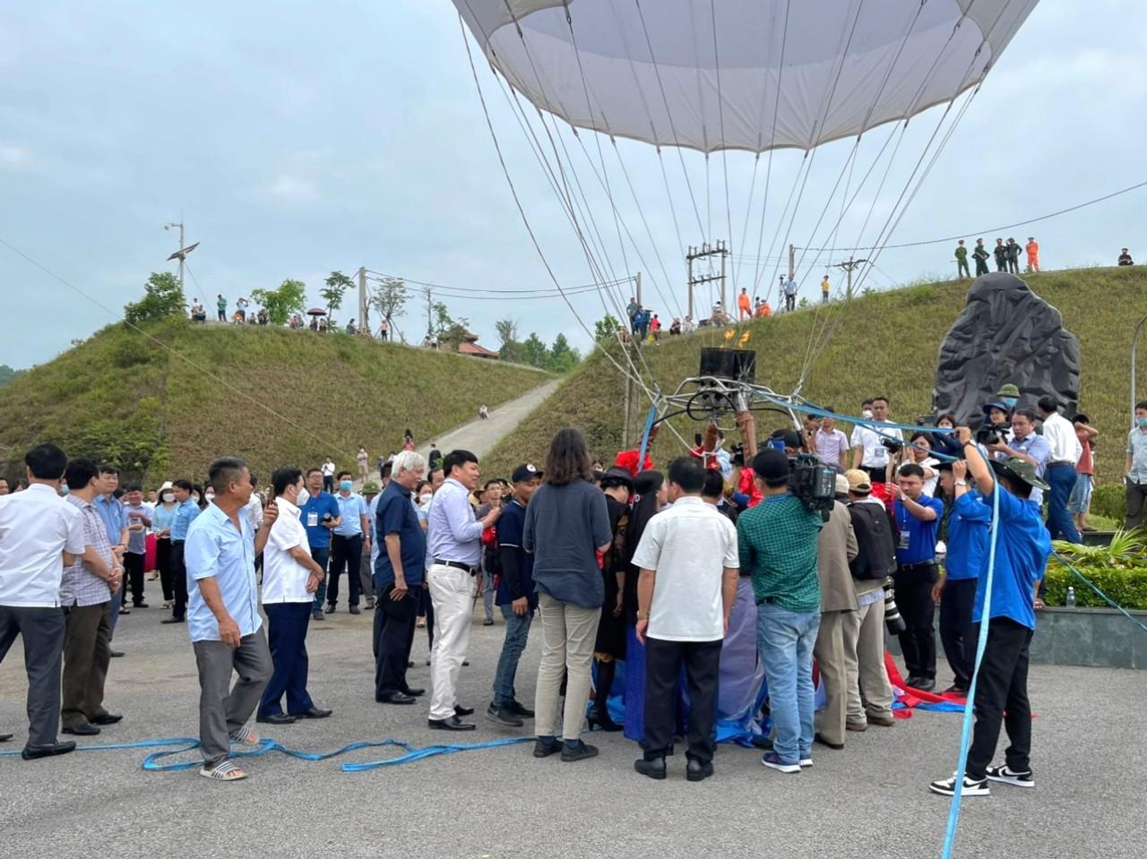 Sáng 7/5, tại đập chính công trình thủy lợi Ngàn Trươi, UBND huyện Vũ Quang phối hợp với các đơn vị liên quan tổ chức trình diễn bay khinh khí cầu “Cuộc dạo chơi của Sao la - Kỳ lân châu Á” chào mừng Đại hội thể thao Đông Nam Á - Sea Games 31.