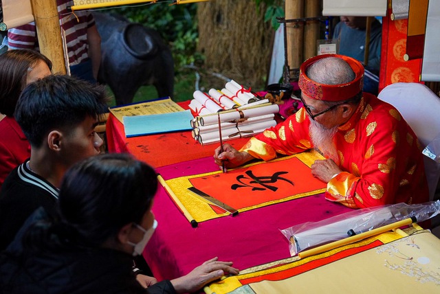 Người dân đổ về Văn Miếu - Quốc Tử Giám (TP Hà Nội) để du xuân và tham gia Hội Chữ Xuân