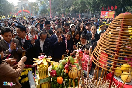 Phó thủ tướng Nguyễn Xuân Phúc, Bí thư Thành ủy Hà Nội Hoàng Trung Hải, nguyên Bí thư Thành ủy Hà Nội Phạm Quang Nghị, Chủ tịch UBND TP Hà Nội Nguyễn Đức Chung... tới dâng hương và tham dự lễ hội. |