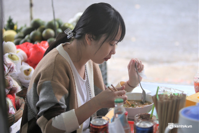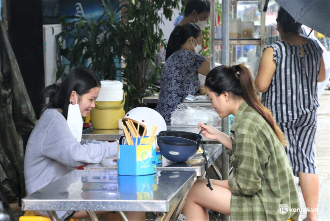 Dù sáng nay Đà Nẵng mưa lớn nhưng người dân đến các quán điểm tâm khá đông. Thực khách tỏ ra hứng khởi vì đã quá lâu không được thoải mái dùng bữa sáng tại quán