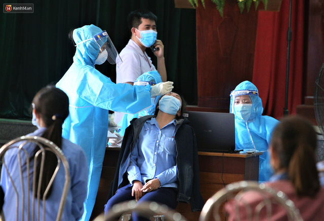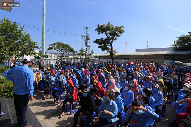 Sáng 15/7, hàng trăm người trong số khoảng 3.000 công nhân của Công ty TNHH Điện tử Việt Hoa (KCN Hòa Khánh, Đà Nẵng), nơi vừa phát hiện ca dương tính với SARS-CoV-2, đã xếp hàng, chen chúc để chờ đến lượt lấy mẫu xét nghiệm Covid-19.