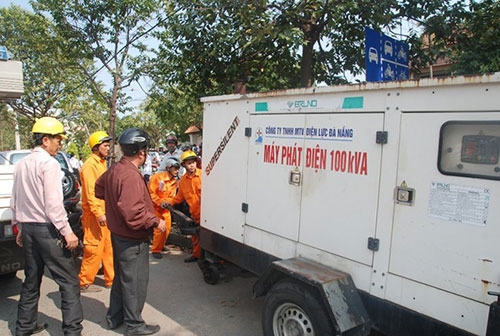 Ngành điện lực Đà Nẵng điều động máy phát điện công suất lớn đến đảm bảo điện cho gia đình tổ chức tang lễ. |