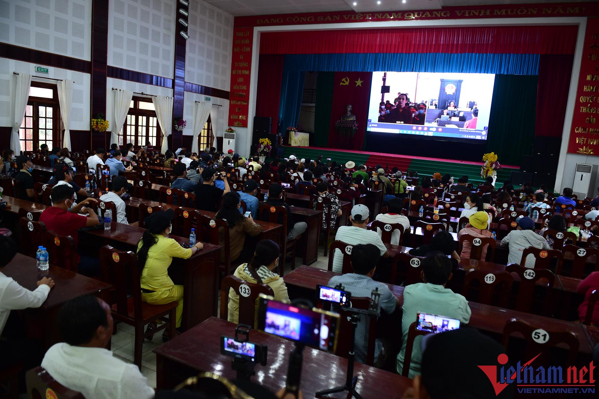 Hàng trăm người tập trung về Trung tâm văn hóa huyện Đức Hòa, Long An để theo dõi phiên tòa xét xử ông Lê Tùng Vân và đồng phạm xảy ra tại Tịnh Thất Bồng Lai qua màn hình máy chiếu.