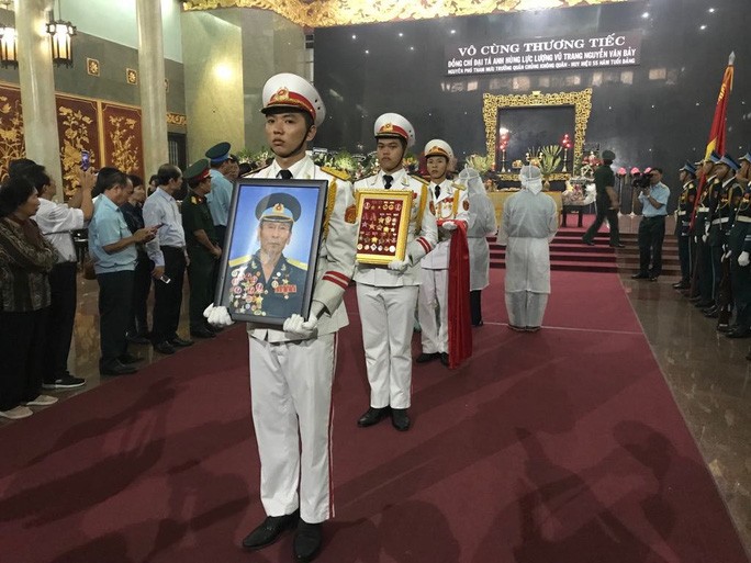 Sáng 26-9, hàng trăm người dân, lực lượng vũ trang đã đến Nhà tang lễ Bộ Quốc phòng (quận Gò Vấp, TP HCM) tiễn đưa Anh hùng phi công Nguyễn Văn Bảy về đất mẹ
