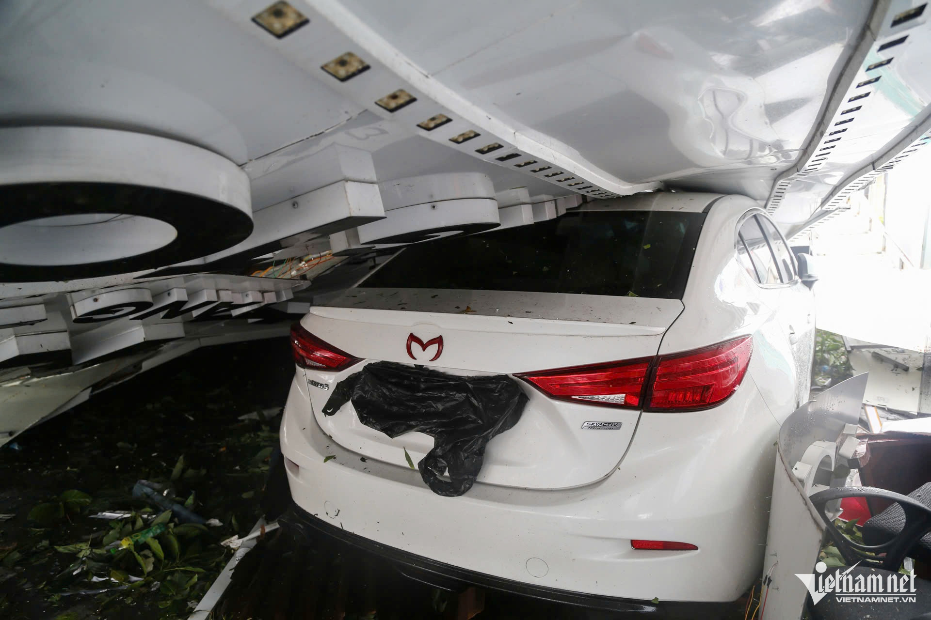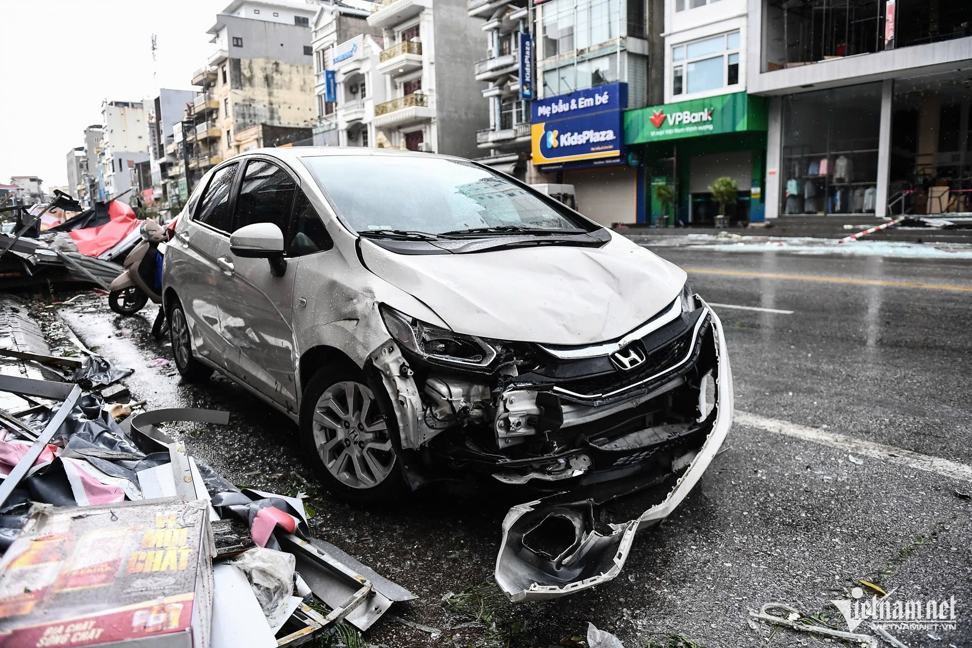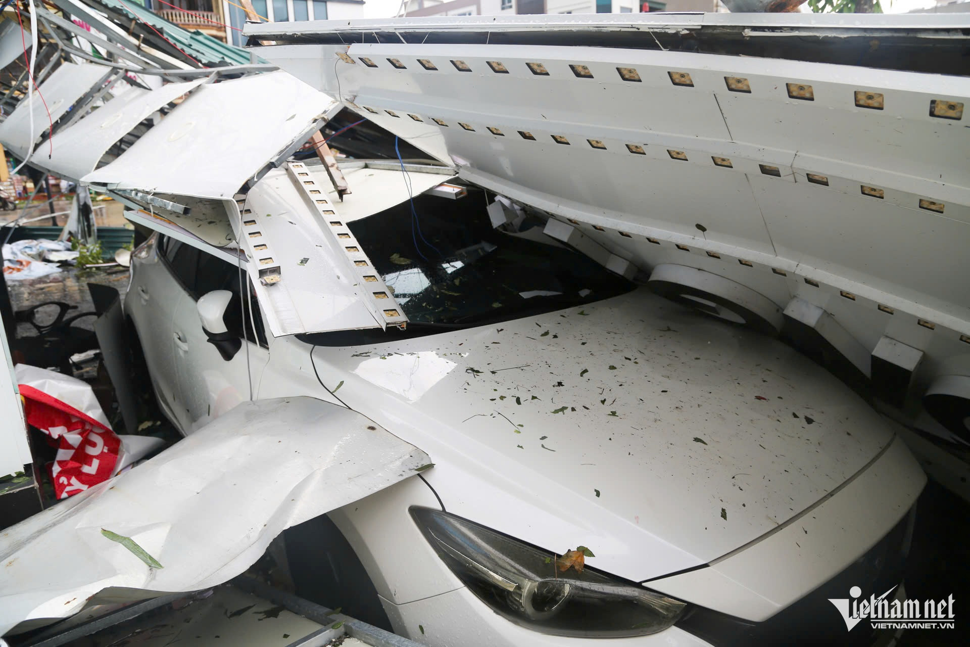 Hàng trăm ô tô của người dân dù để trong nhà hay bên lề đường ở phường Bãi Cháy (TP Hạ Long, Quảng Ninh) đều bị sự tàn phá của bão số 3 khiến các đồ vật rơi, đè trúng gây hư hỏng nặng.