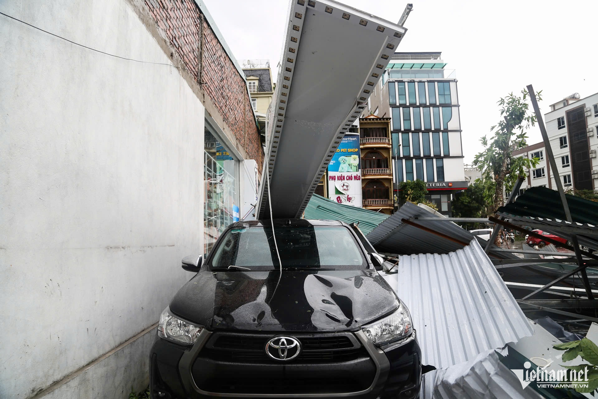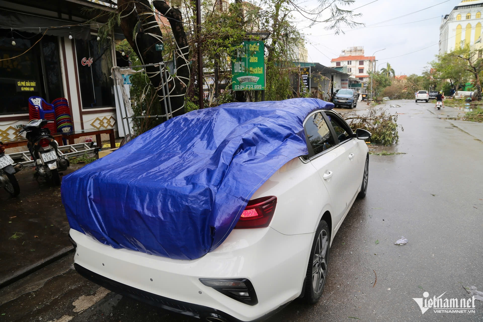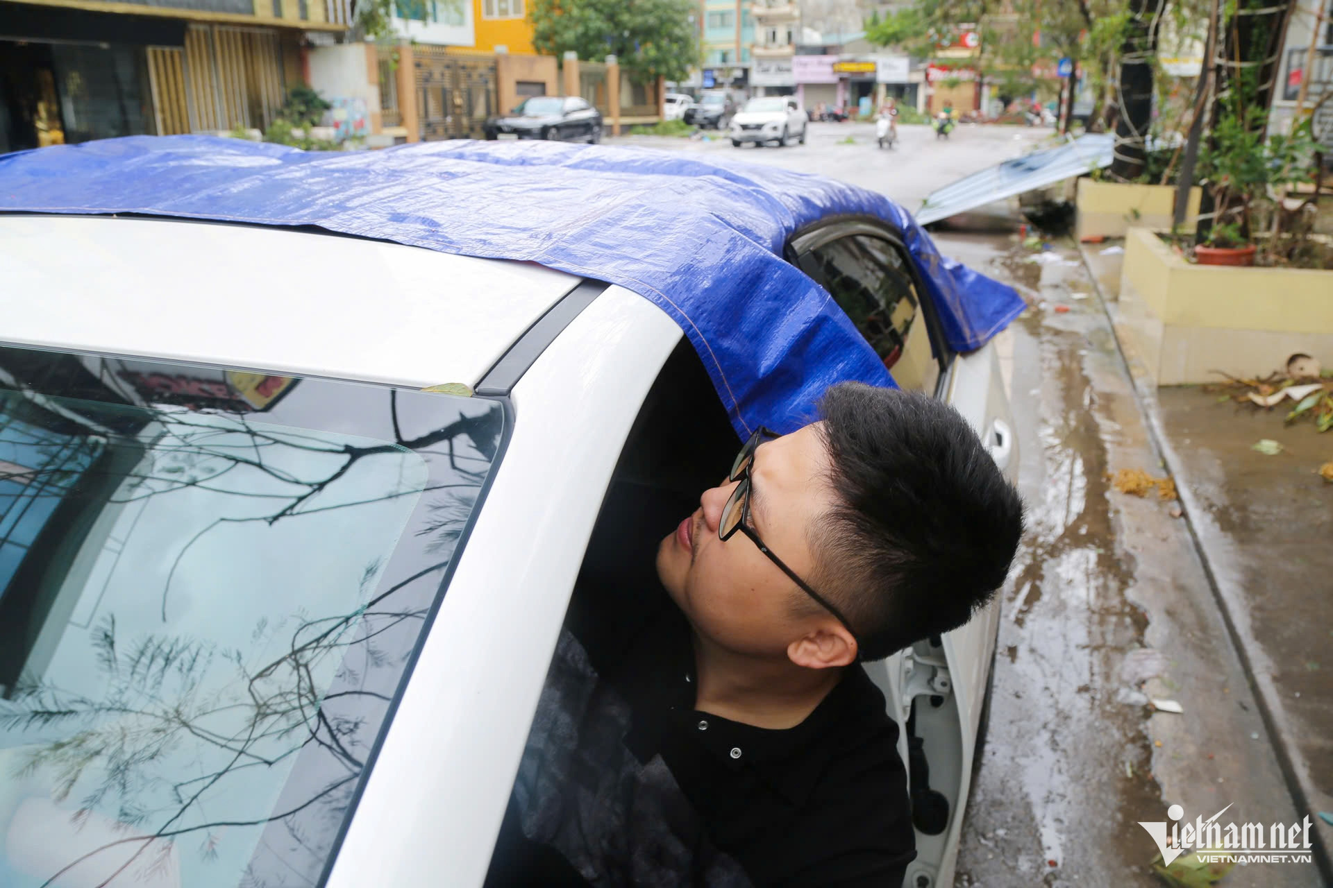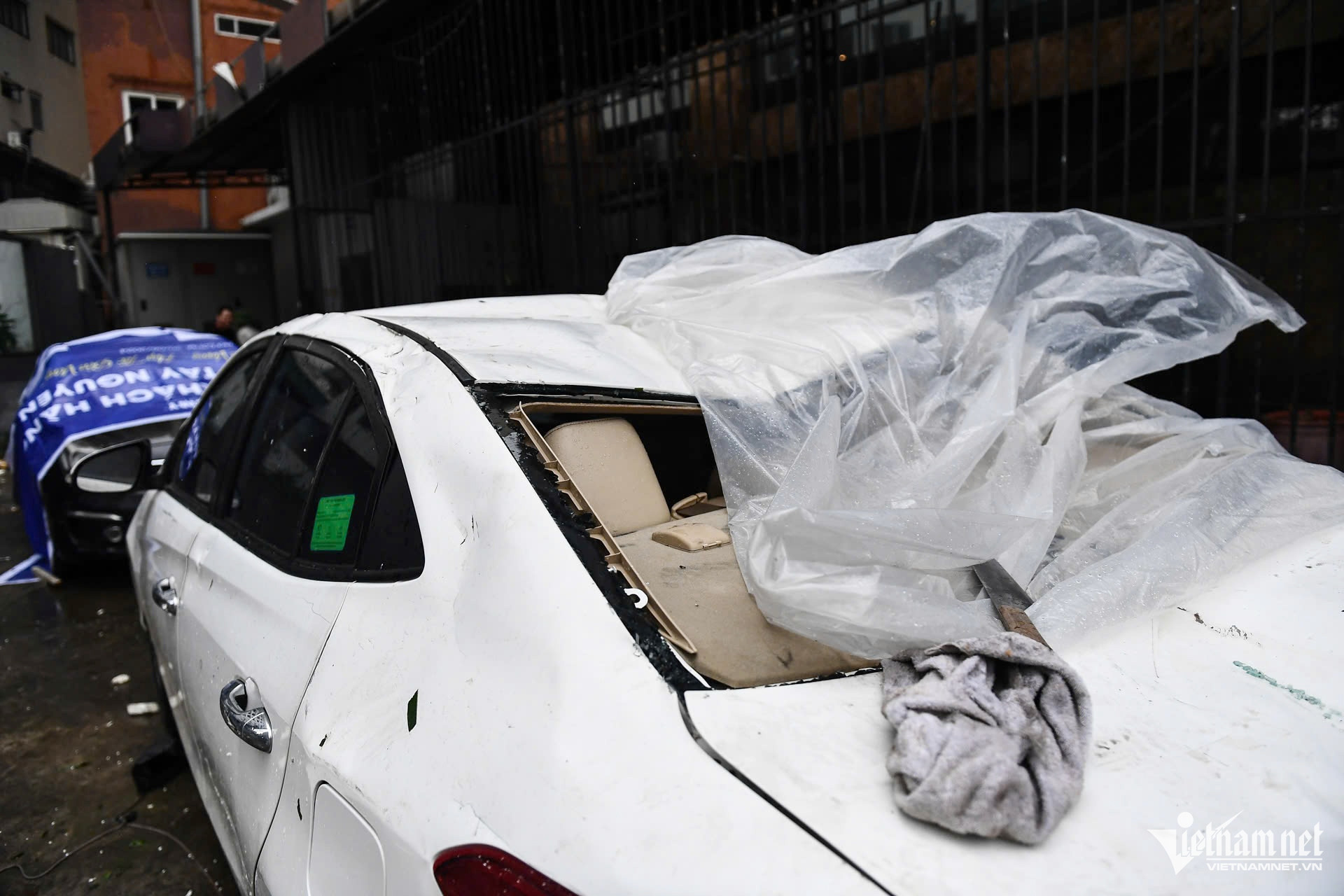 Hàng trăm ô tô của người dân dù để trong nhà hay bên lề đường ở phường Bãi Cháy (TP Hạ Long, Quảng Ninh) đều bị sự tàn phá của bão số 3 khiến các đồ vật rơi, đè trúng gây hư hỏng nặng.