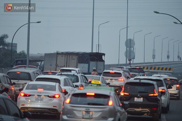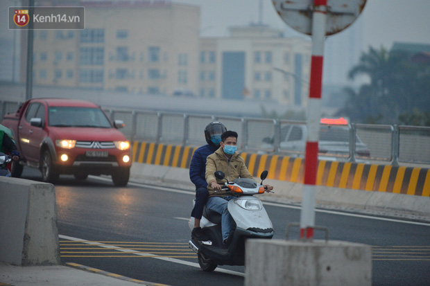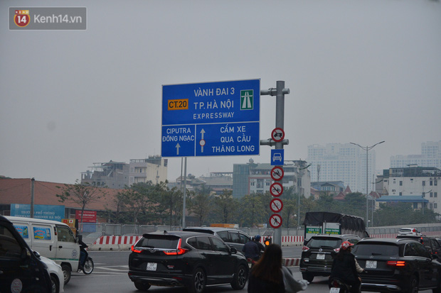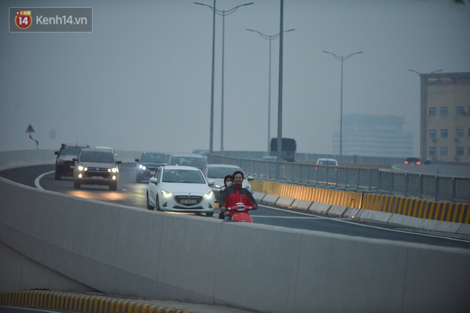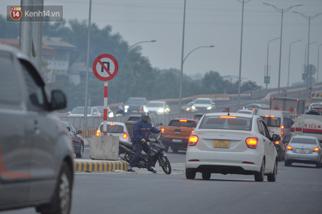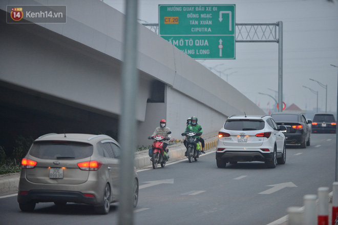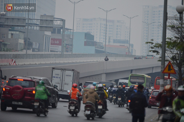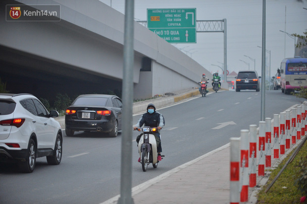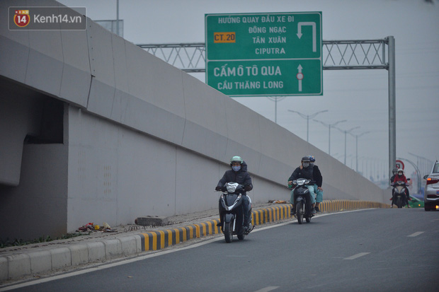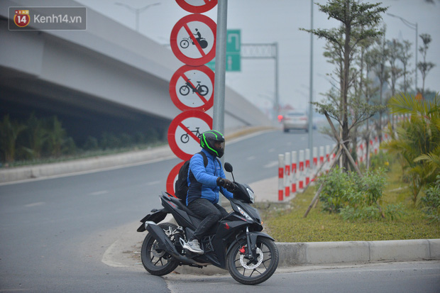 Hàng loạt xe máy vẫn bất chấp biển cấm đi lên tuyến đường Vành đai 3 trên cao (đoạn từ cầu Mai Dịch đến đầu cầu Thăng Long và ngược lại).