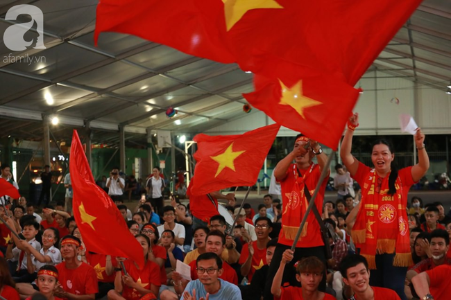 Hiệp một kết thúc với tỷ số 1-0 nghiêng về đội tuyển Việt Nam - những người thi đấu lấn lướt. Các CĐV Sài Gòn đang cùng nhau tạo nên không khí không thể cuồng nhiệt hơn tại SVĐ Hoa Lư.