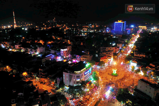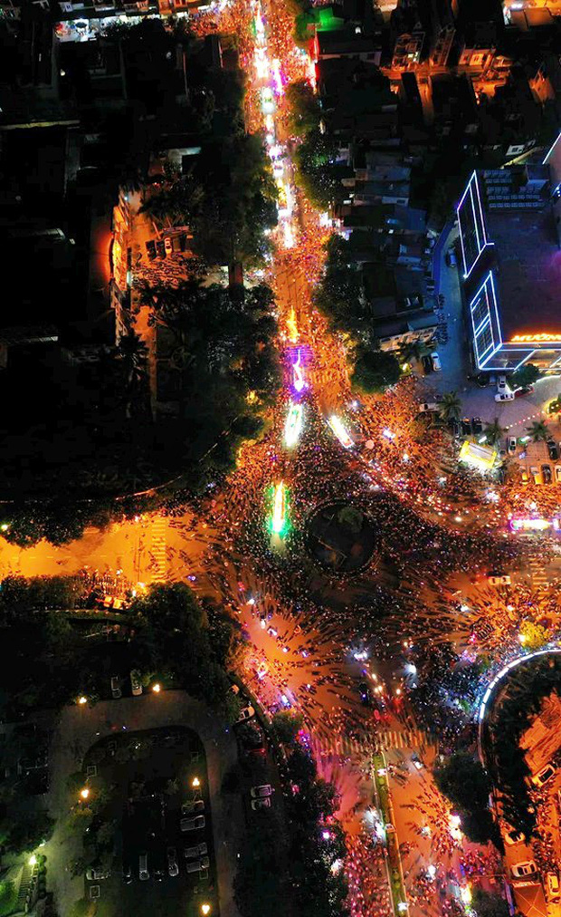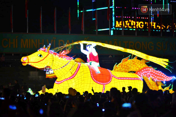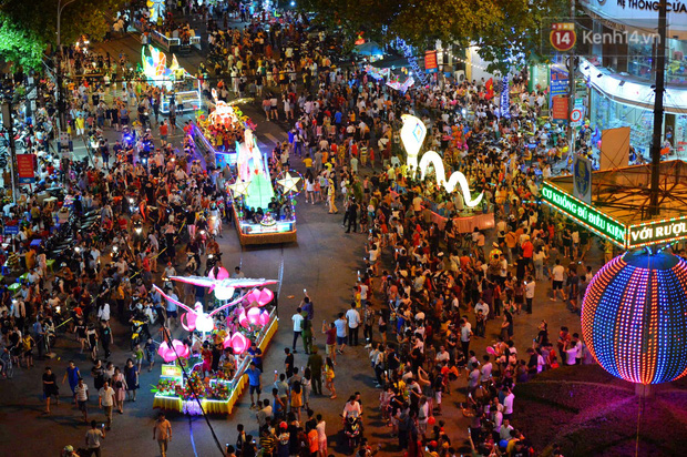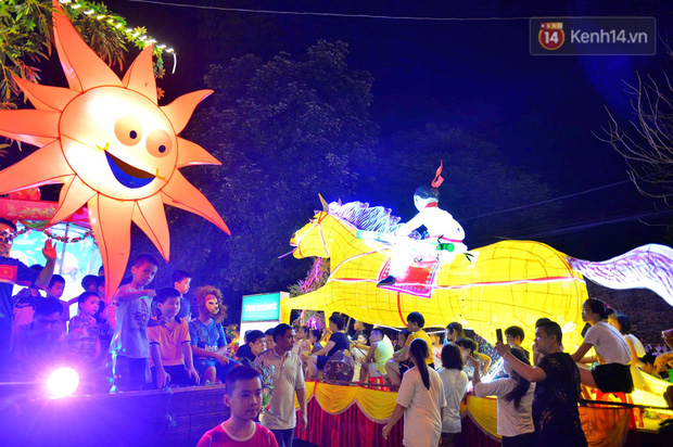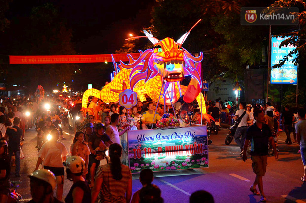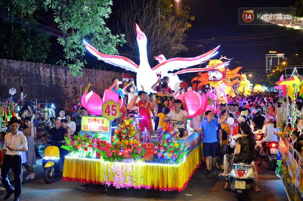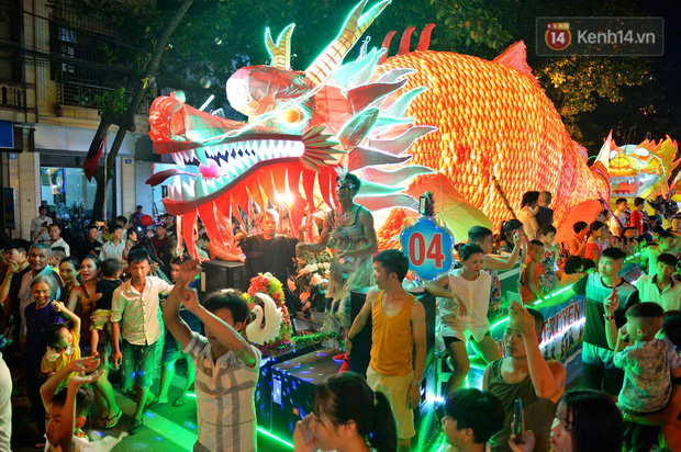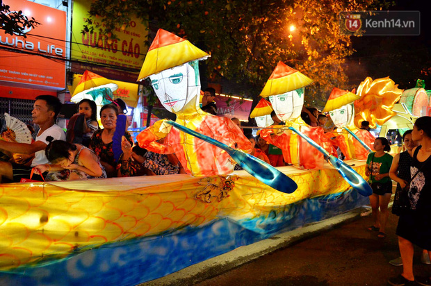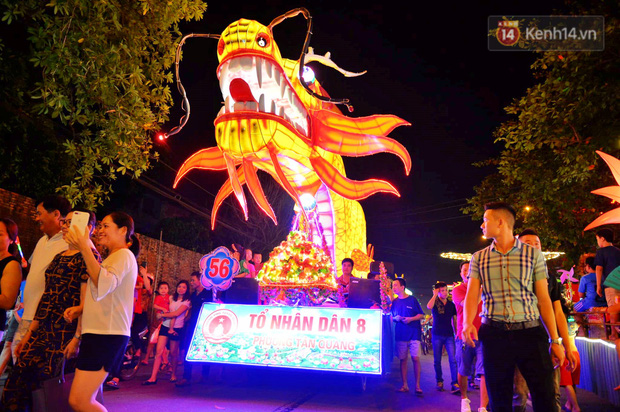 Rất nhiều mô hình đèn lồng khổng lồ từ các tổ dân phố, các phường từ nhiều tuyến đường đổ về các tuyến phố chính tạo nên một không khí nhộn nhịp vui tươi.