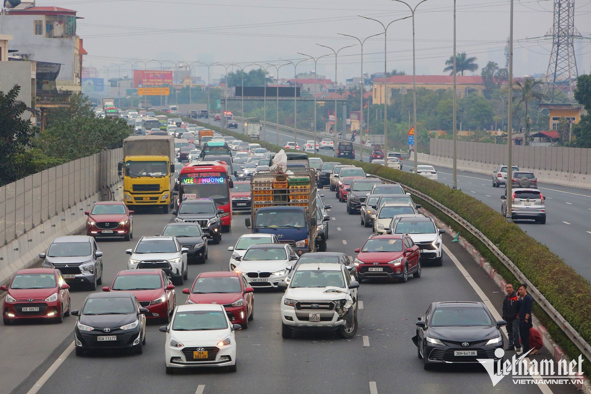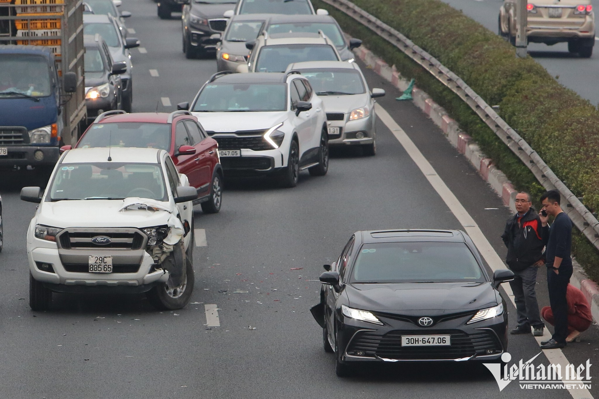Đặc biệt, tại đường dẫn vào cao tốc Pháp Vân - Cầu Giẽ - Ninh Bình đã xảy ra va chạm giữa hai ô tô con khiến dòng phương tiện bị ùn tắc kéo dài theo hướng từ Hà Nội - Hà Nam.
