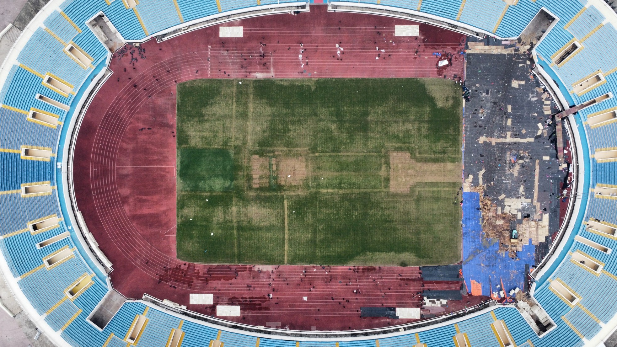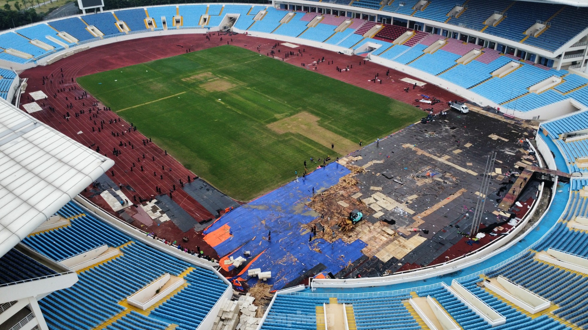 Hai ngày sau khi BlackPink về nước và người hâm mộ rời đi, sân Mỹ Đình vẫn chưa được trả về nguyên bản. Rác thải chưa được xử lý xong, sân khấu và nhiều hạng mục đang tiếp tục tháo dỡ. Đặc biệt, mặt cỏ sân vận động để lại những dấu vết nặng nề.