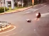 Đúng lúc này, một người phụ nữ điều khiển xe máy đi tới. Do sự việc xảy ra quá nhanh và bất ngờ, nạn nhân hoàn toàn không có cơ hội phản xạ hay né tránh. Sợi dây cáp văng trúng người và phương tiện đã hất văng người phụ nữ xuống mặt đường. Cú ngã sõng soài đầy đau đớn ngay giữa dòng xe cộ qua lại khiến những người chứng kiến không khỏi thót tim vì lo sợ một thảm kịch tồi tệ hơn có thể xảy ra.