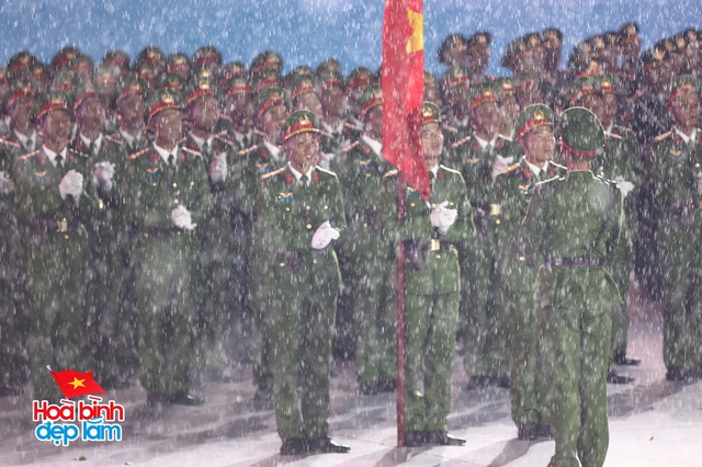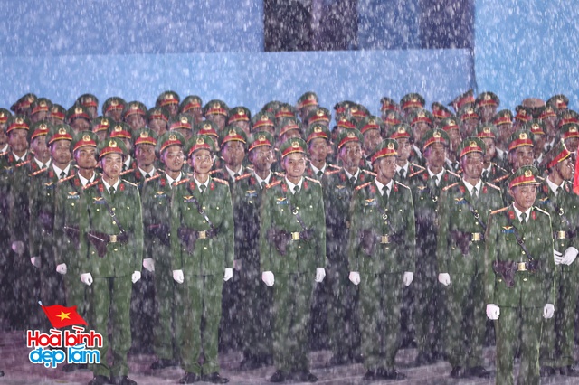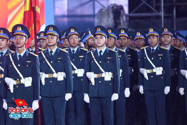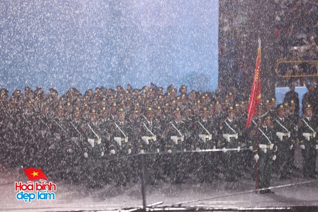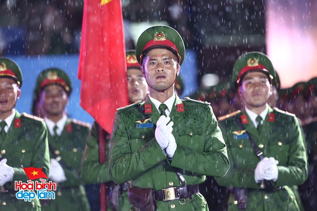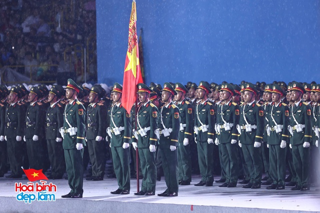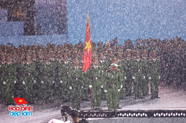 Trên nền trời mưa xám, hình ảnh 38 khối diễu binh hiên ngang tiến bước, hàng ngũ chỉnh tề trong tiếng nhạc hùng tráng khiến người xem không khỏi xúc động và tự hào. Những bước chân đều đặn, ánh mắt kiên cường và kỷ luật của các chiến sĩ như thắp sáng cả không gian, bất chấp thời tiết khắc nghiệt.